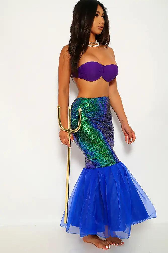 Royal Blue Green Mermaid Skirt One Piece Costume