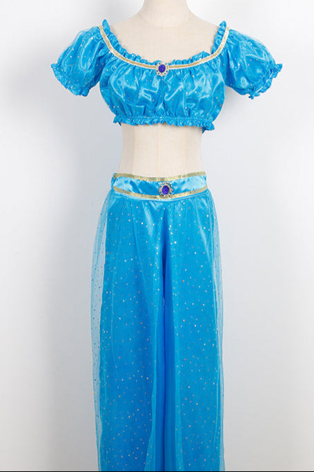 Blue Mesh Glitter Gold Sexy Princess Jas Costume