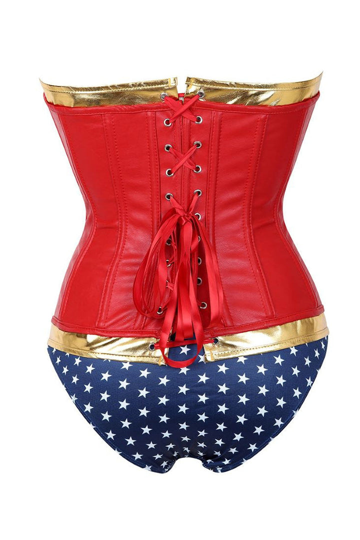 Red Blue Gold Lace-Up Corset Shorts Sexy 2Pc Wonder Woman Costume