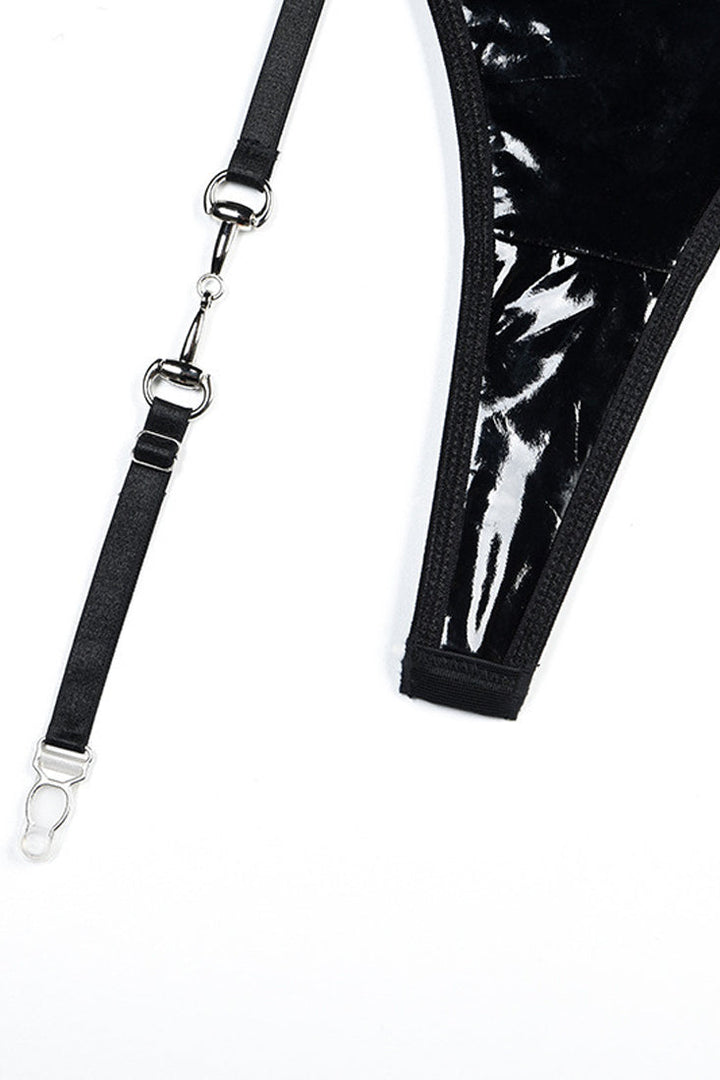 Black Patent Push-Up Designer Buckle Garter Thong Sexy Bodysuit Costume