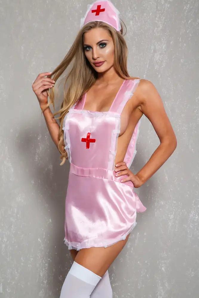 Sexy Pink Satin Nurse 3 Pc. Bedroom Costume