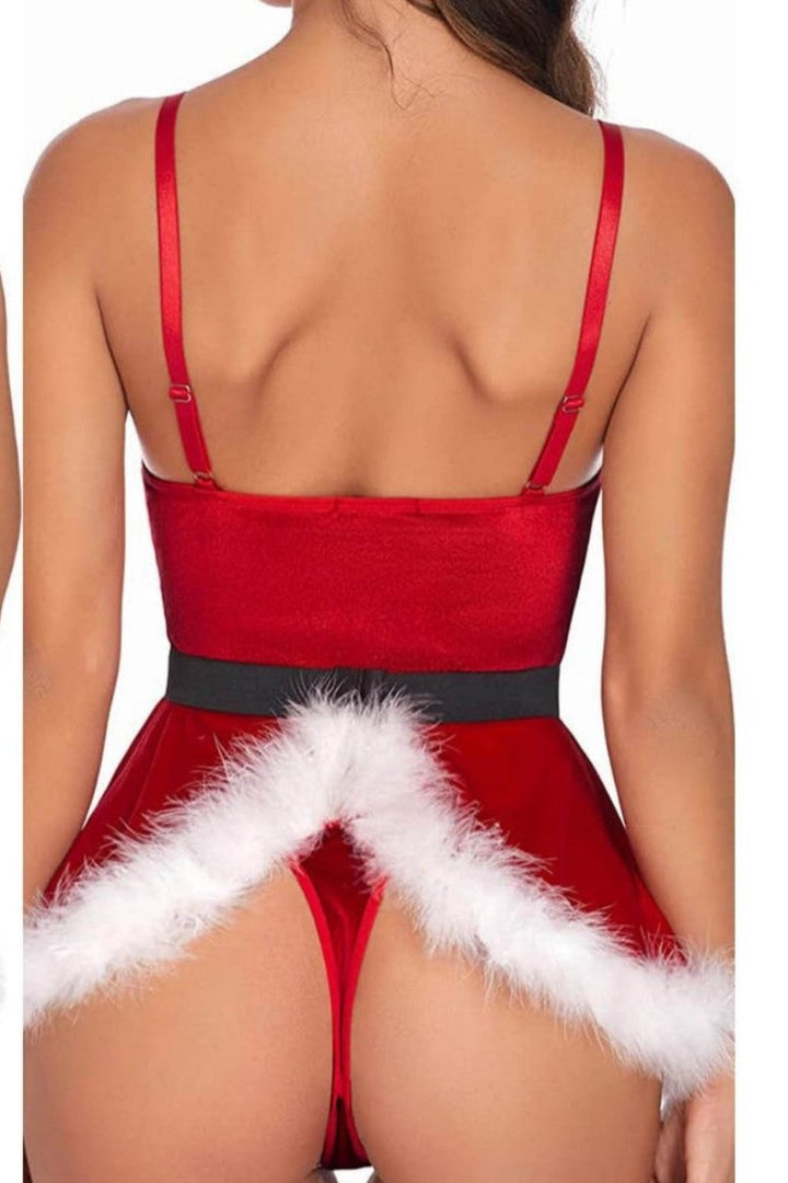 Red Velvet White Fur Belted Thong Holiday Outfit Santa Costume