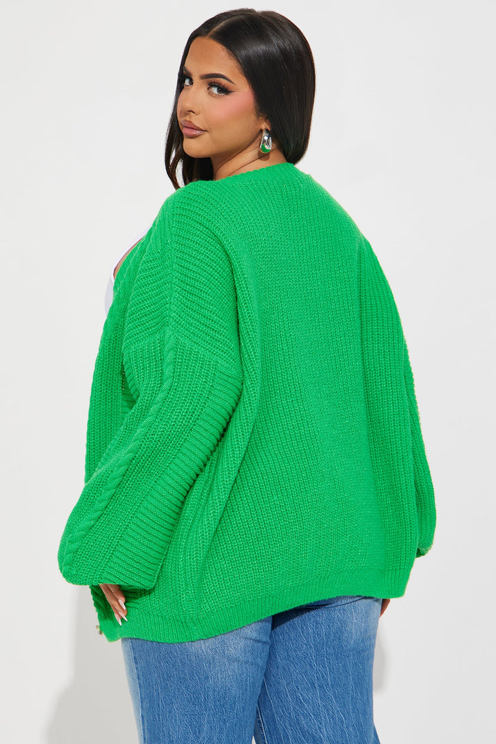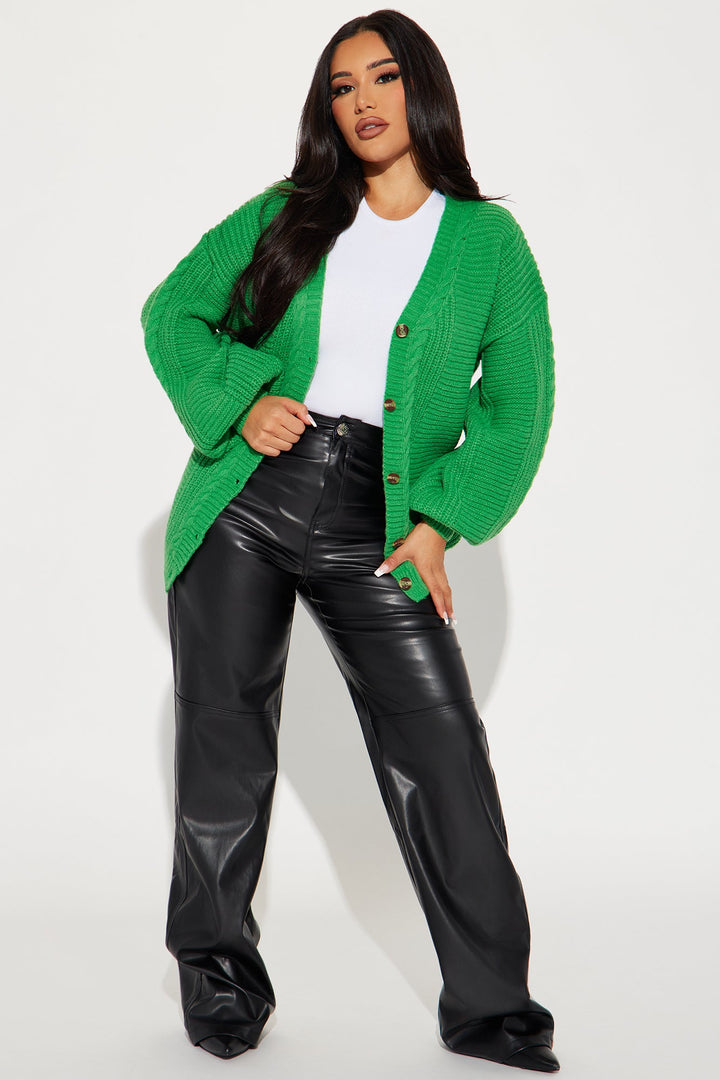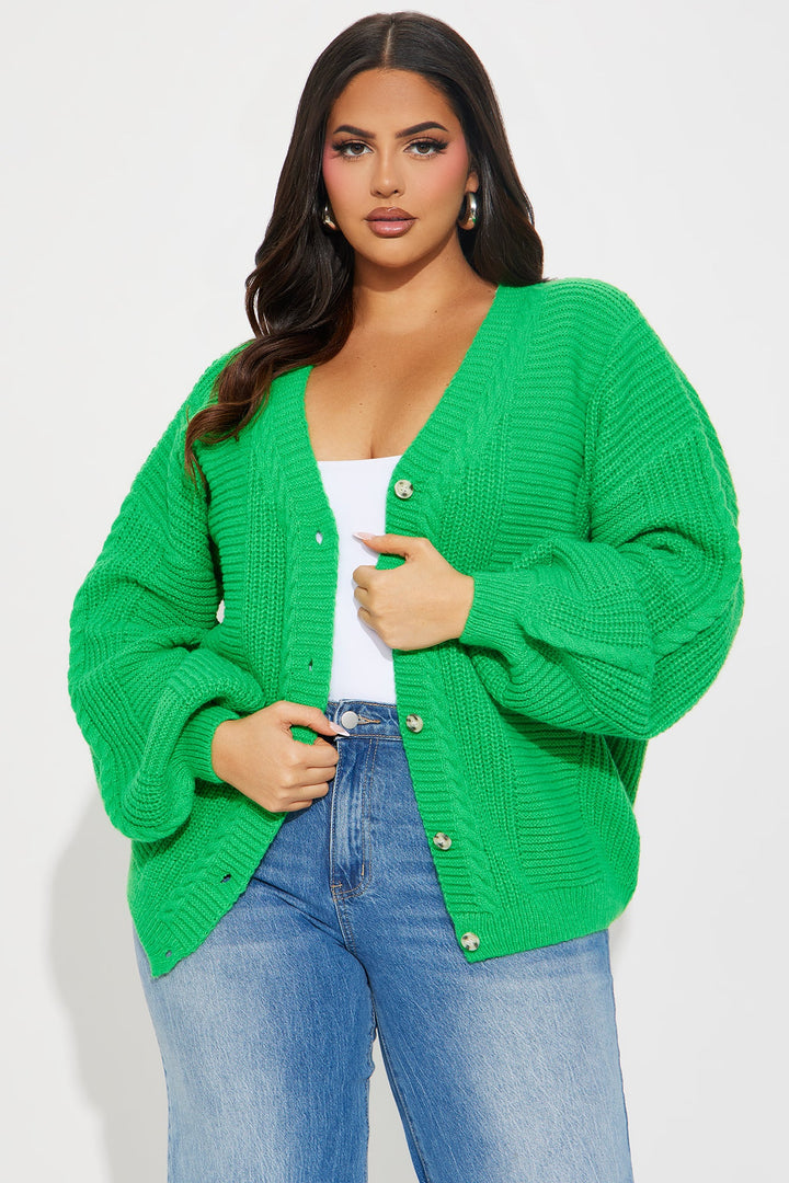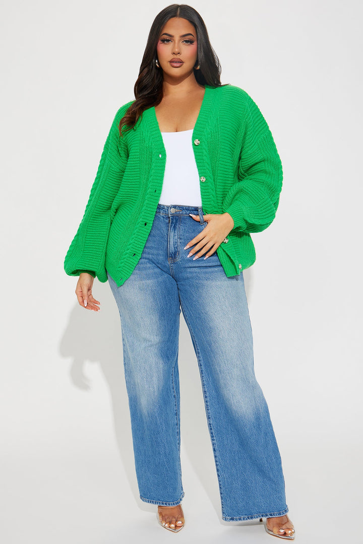 Available In Cream, Green And Pink. | Cardigan Sweater | Long Sleeve | Balloon Sleeve | V Neck | Button Down | Oversized | Ribbed | 100% Polyester | Imported