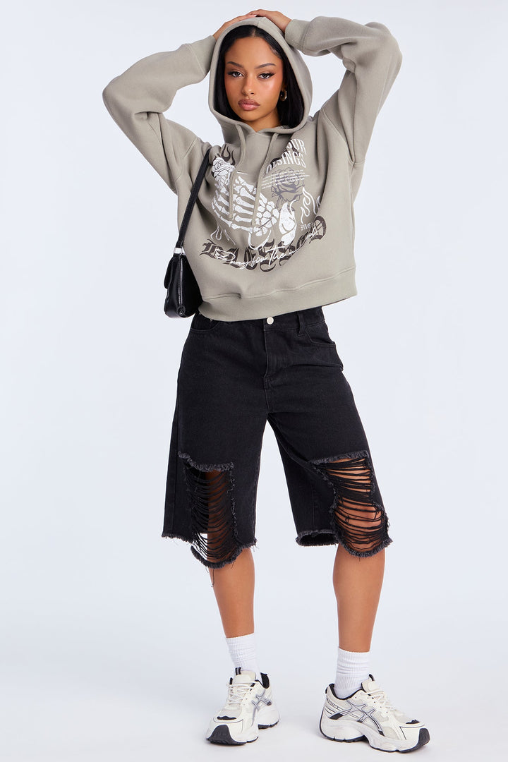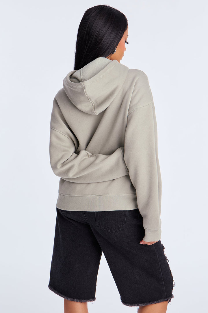 Available In Sage. | Hoodie | Long Sleeve | Front Pockets | Disclaimer: Due To The Printing Process A Difference In Saturation May Occur. Each Garment Is Unique. | Self: 55% Cotton 45% Polyester | Imported