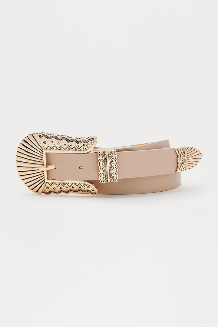 Cross Roads Engraved Belt - Taupe