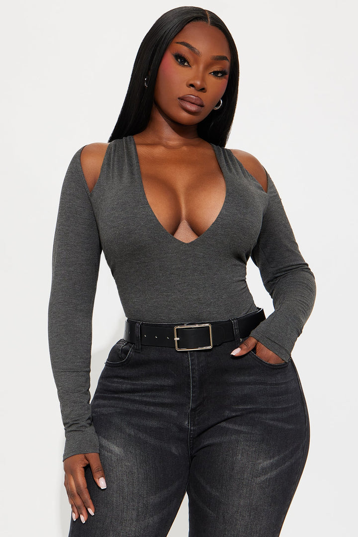 Crysta Long Sleeve Cut Out Bodysuit - Charcoal