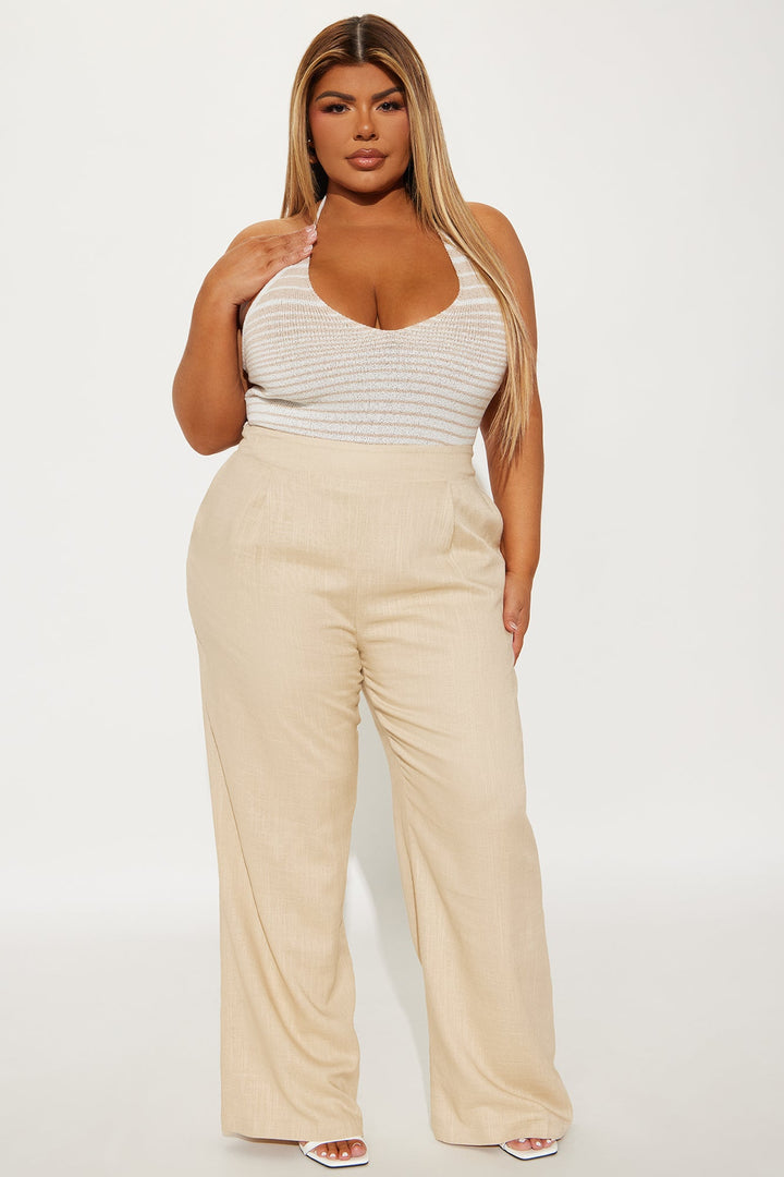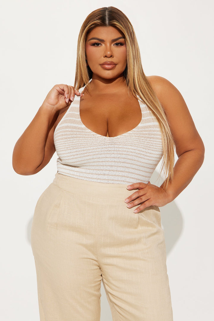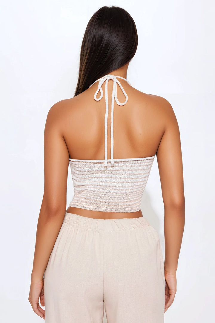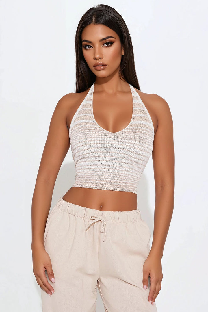 Cute Mood Striped Halter Sweater - Taupe/combo