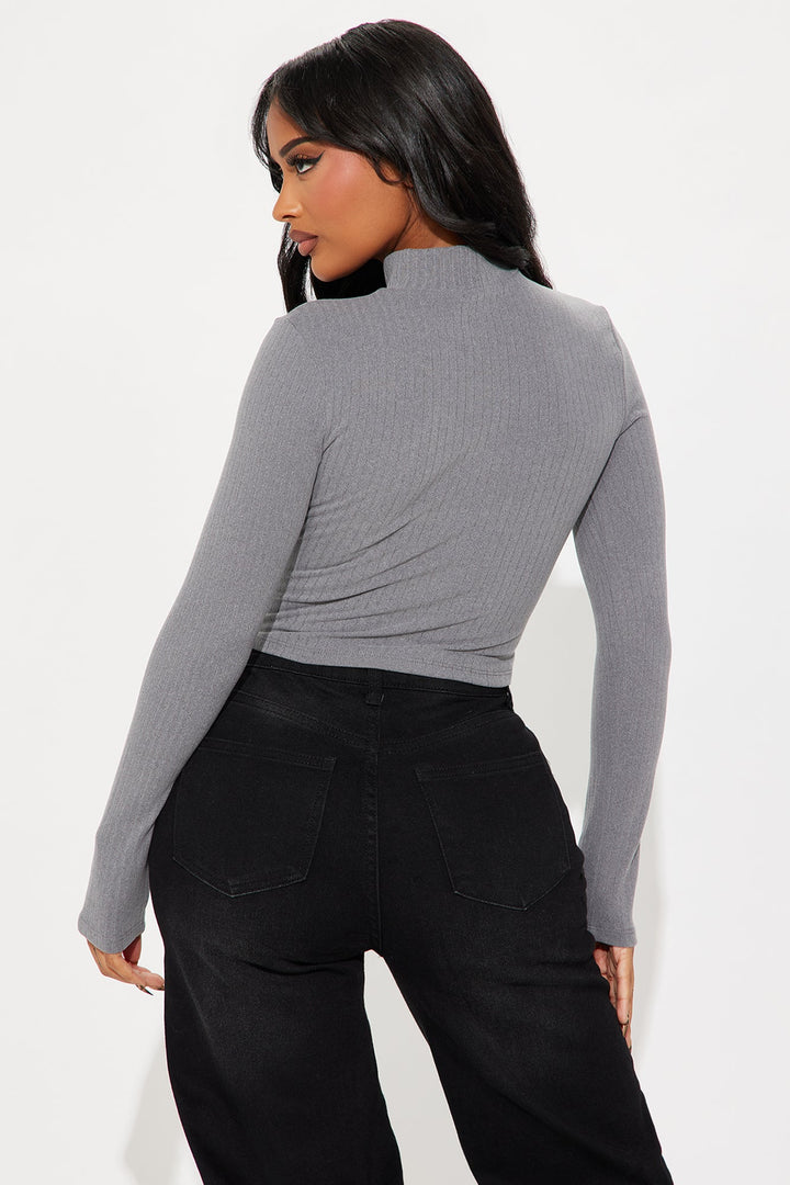 Daniella Mock Neck Long Sleeve Top - Heather Grey