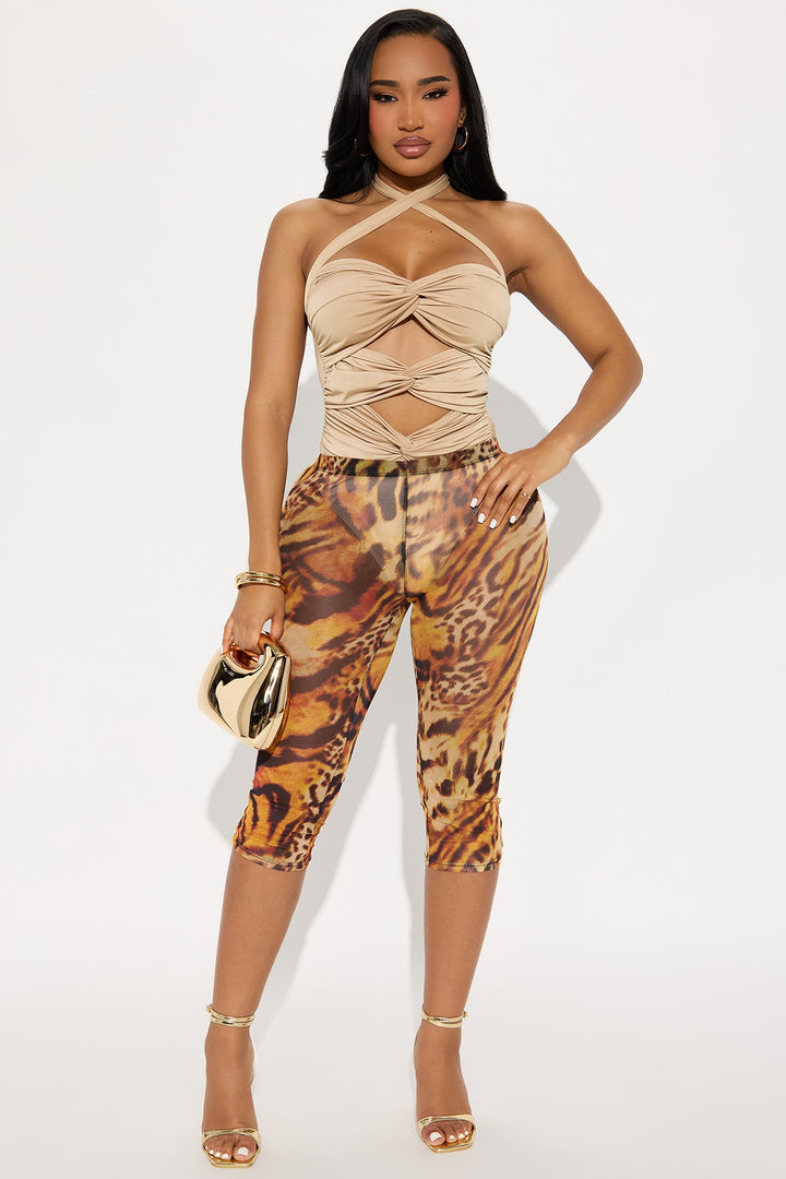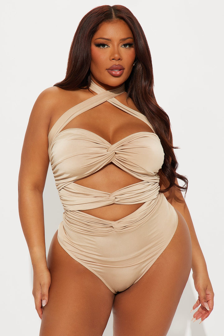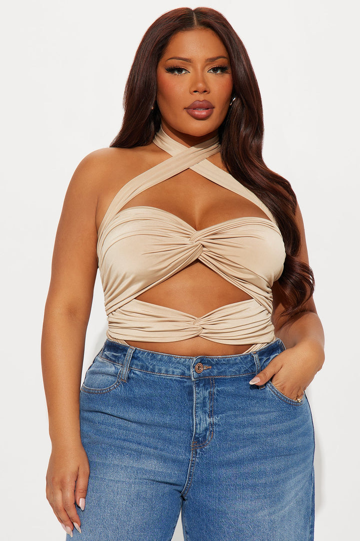 Dare Me Ruched Cut Out Halter Bodysuit - Taupe