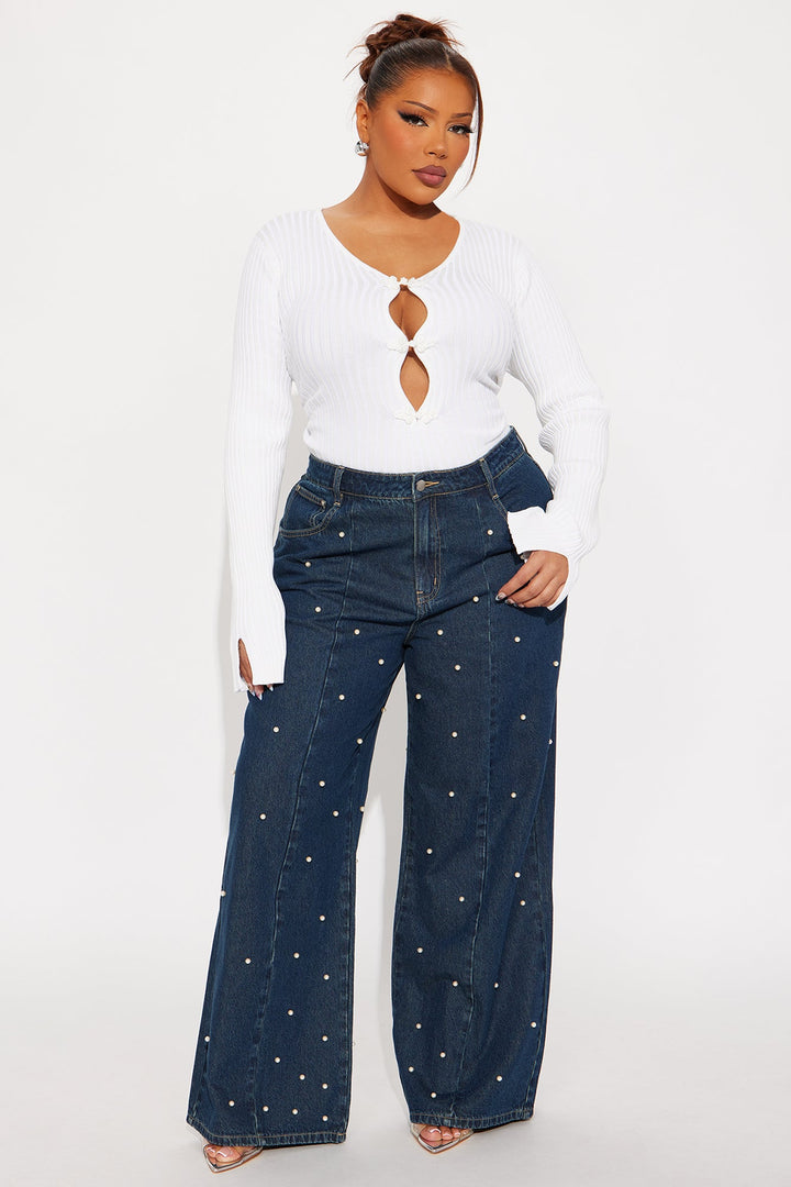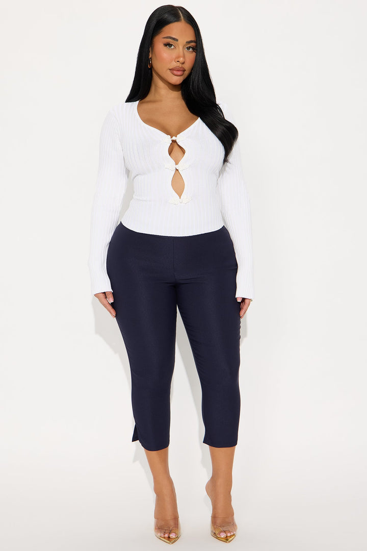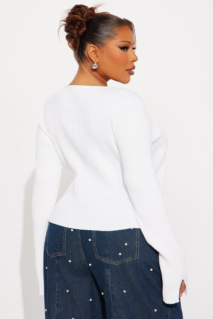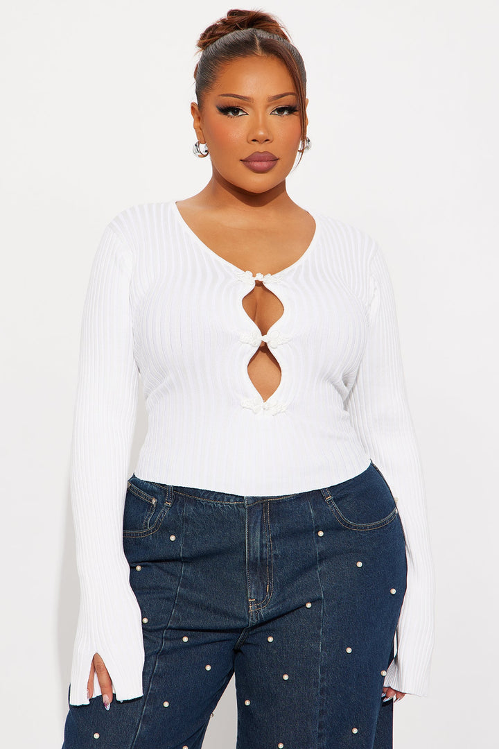 Available In White. | Pullover Sweater | V Neck | Applique Detail | Cut Out | Self : 80% Viscose 20% Nylon | Imported