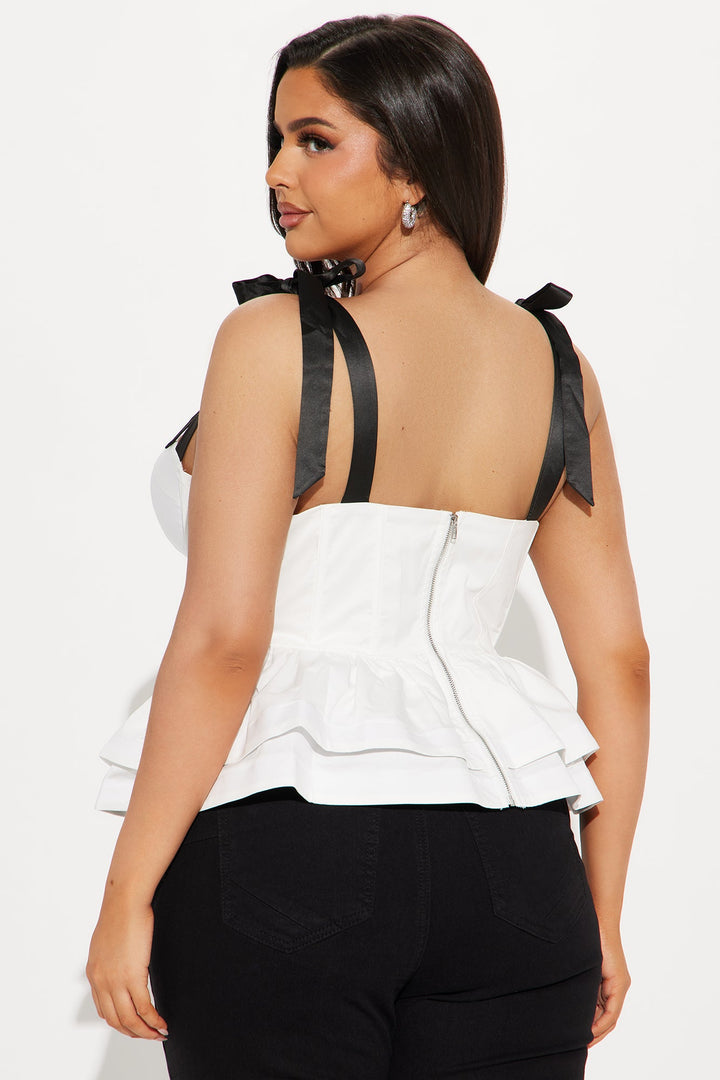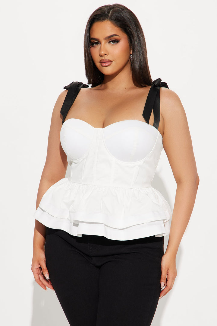 Available In Black, Butter Yellow And White. | Corset Top | Non Stretch | Adjustable Tie Shoulder | Padded And Underwire | Boning | Lined | Shell1: 100% Cotton | Shell2: 95% Polyester 5% Spandex | Imported