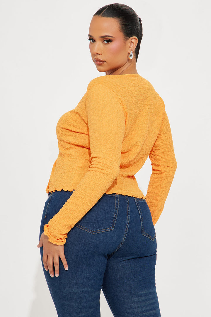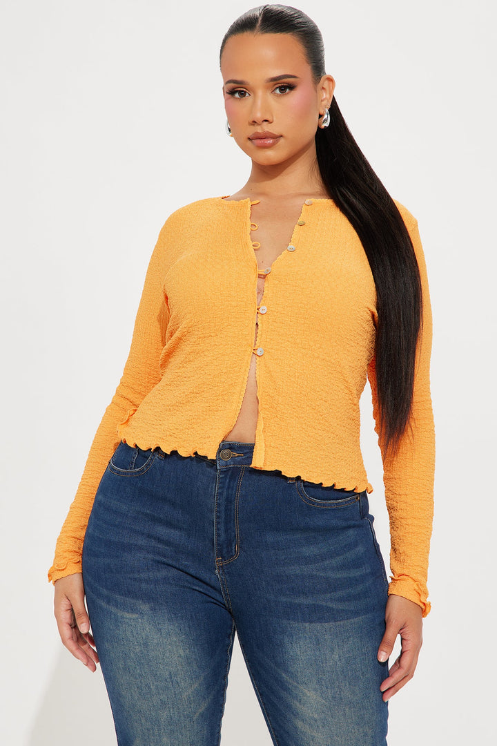 Delicate Kindness Long Sleeve Button Up Top - Orange