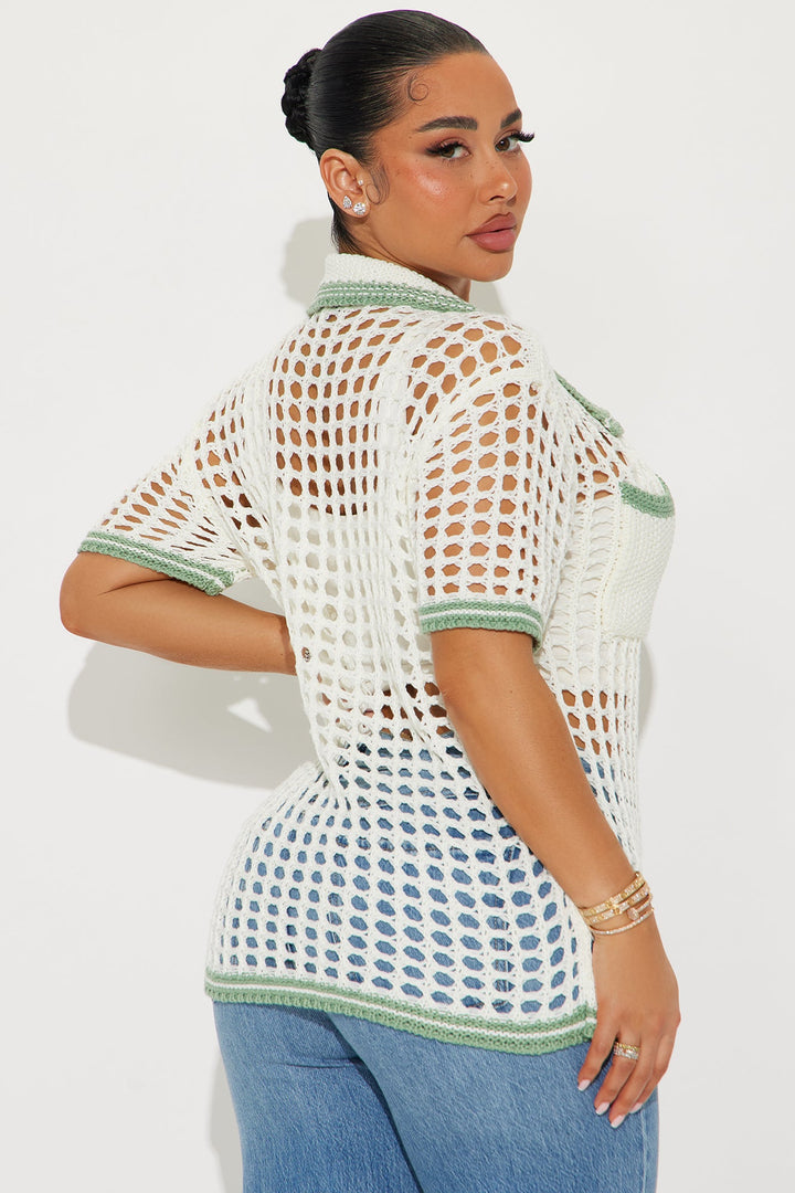 Available In Chocolate/Combo And Sage/combo. | Oversized Crochet Shirt | Button Front | Front Pocket | Shell : 100% Acrylic | Imported