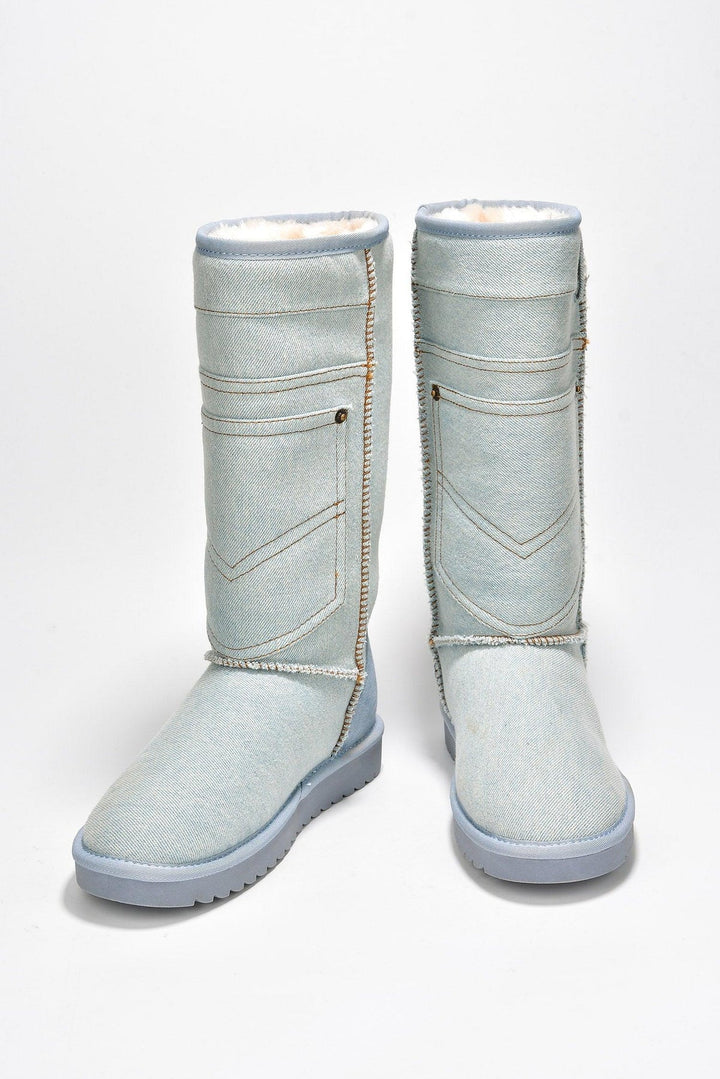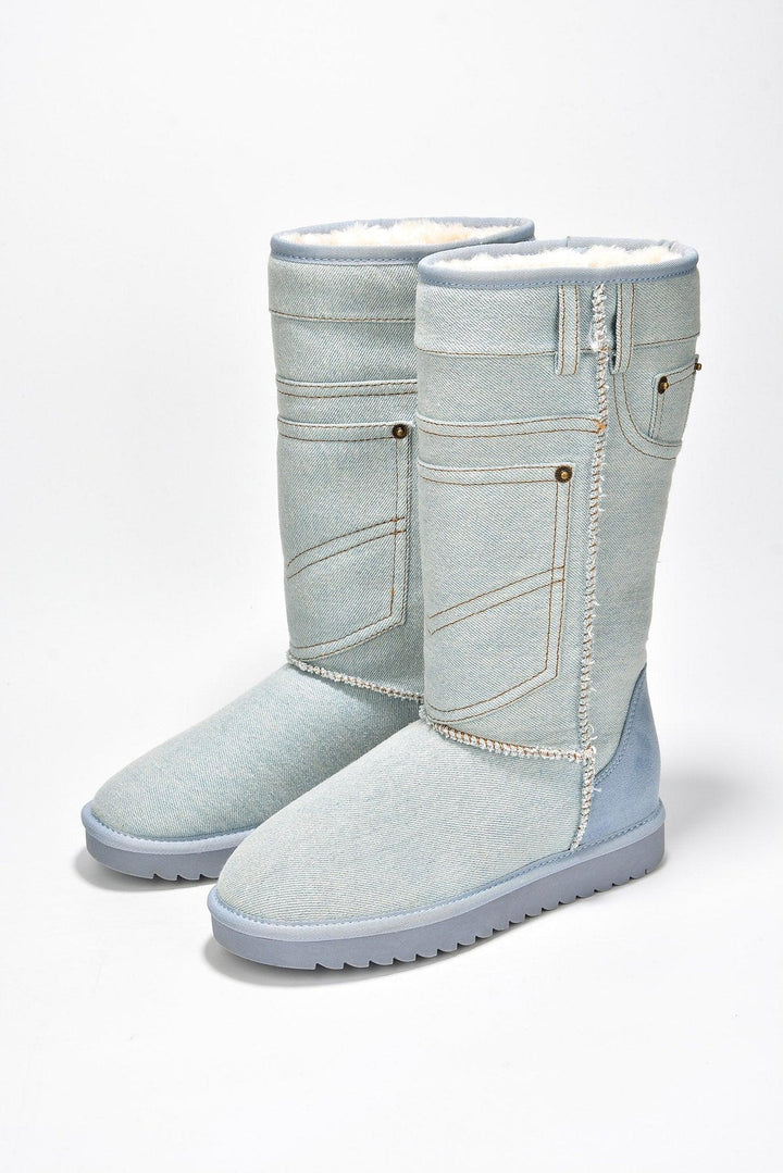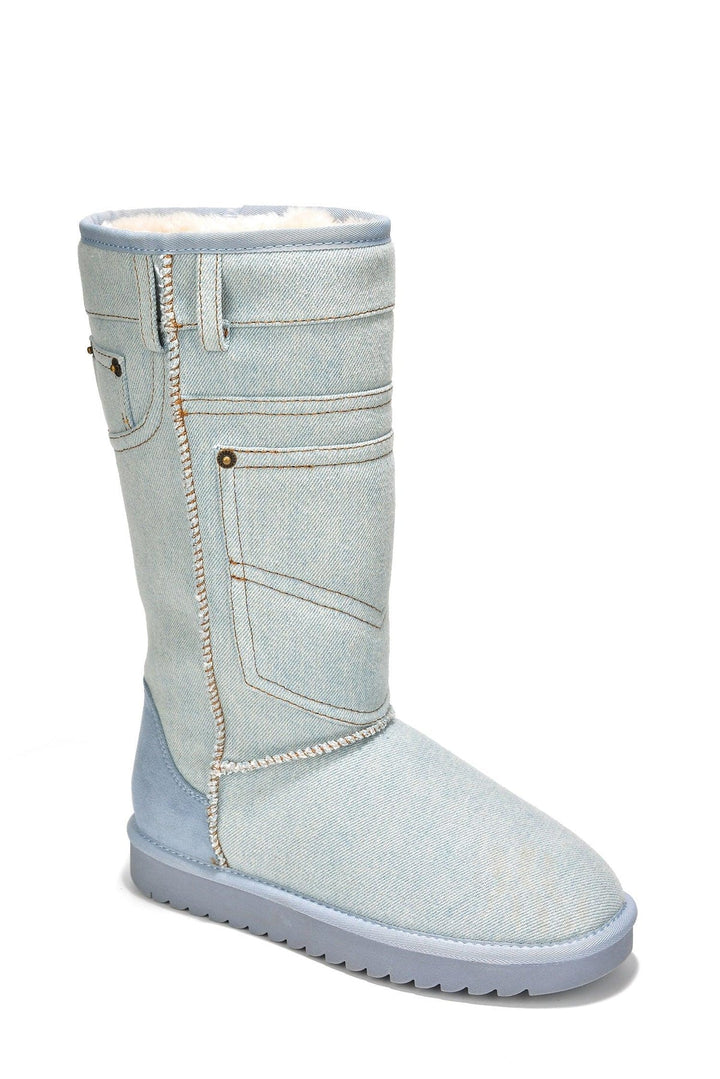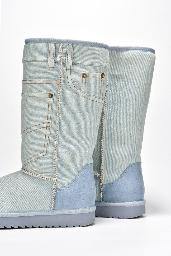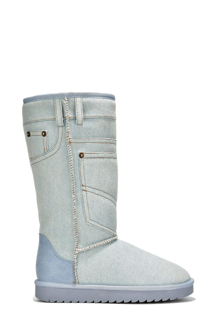 DERANO - LIGHT BLUE - BOOTIES by CAPE ROBBIN winter boots lug sole snow boots denim finish suede heel rand faux fur liner round toe Step out in style with Derano! These ultra-comfy booties feature a denim finish with a suede heel rand and soft,faux fur liner. Plus,the lug sole helps you walk with confidence.