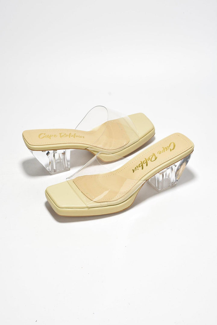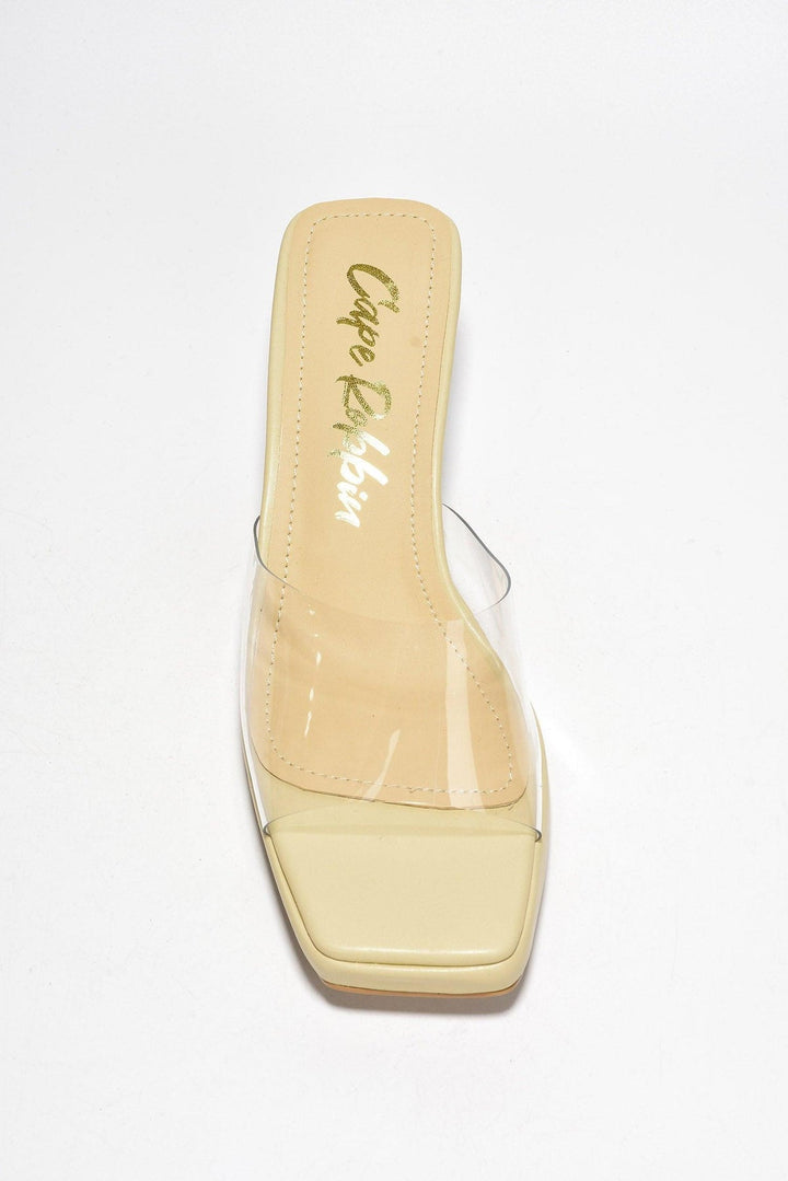 DIONNE - BEIGE - HEELS by CAPE ROBBIN micro platform lightly cushioned insole rubber outsole PU open square toe TPU Dionne heels are the perfect everyday shoes for running errands or brunch dates. Features a sturdy clear mid-block heel,a lug sole for improved traction,and a stylish square-toe silhouette for a timeless feel.
