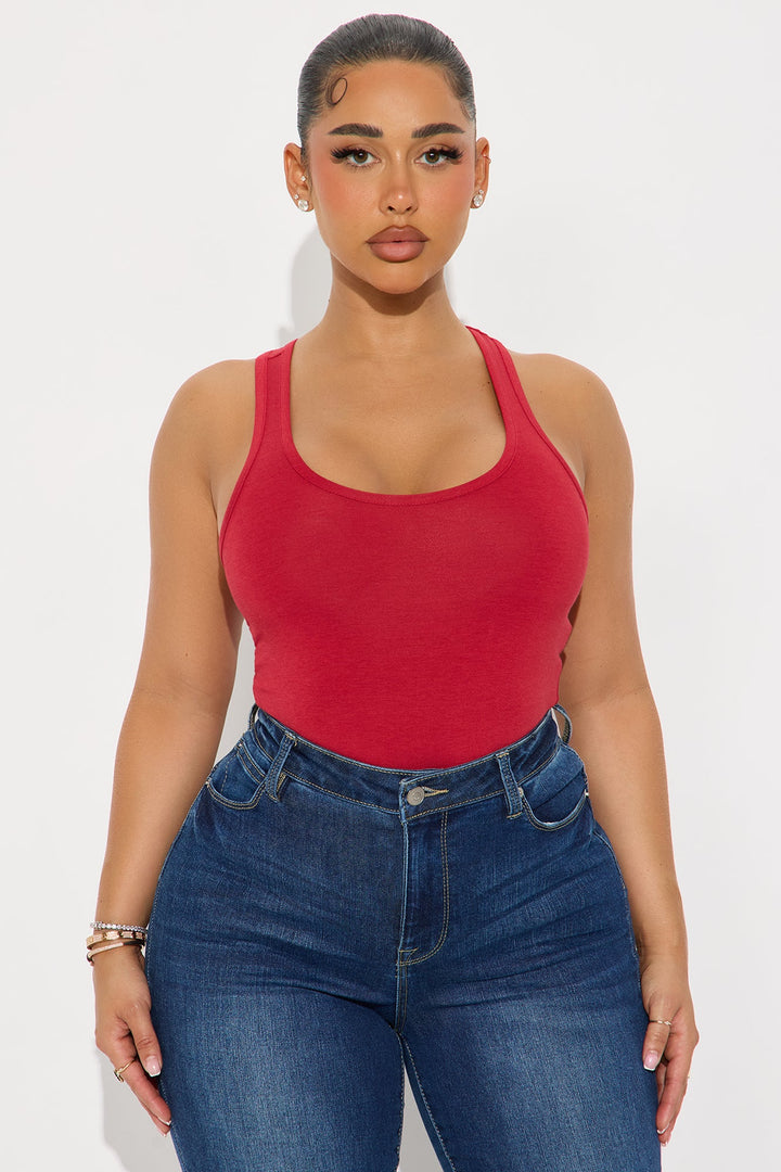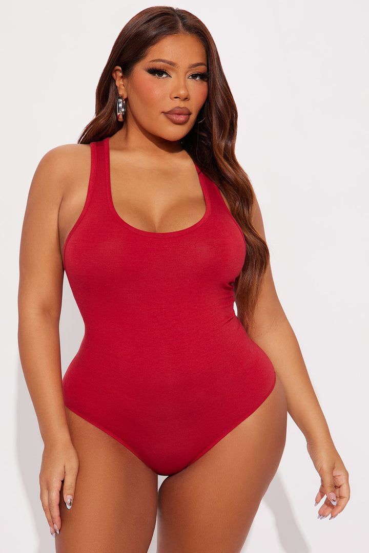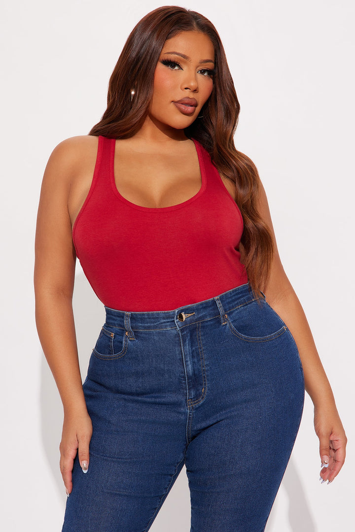 Divine Basic Tank Bodysuit - Burgundy