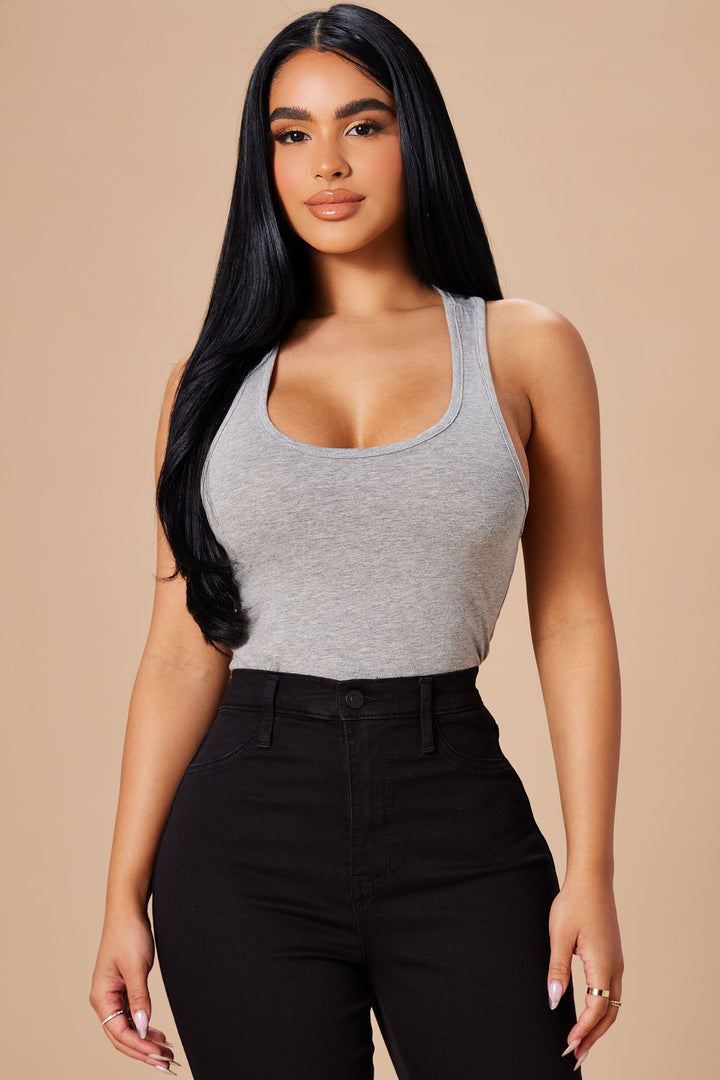 Available In Black, Burgundy, Butter Yellow, Chocolate, Fuchsia, Heather Grey, Khaki, Olive, Orange, Red, Teal And White. | Tank Top Bodysuit | Sleeveless | Cheeky Bottom | Snap Closure | Final Sale | 80% Cotton 15% Viscose 5% Spandex | Imported