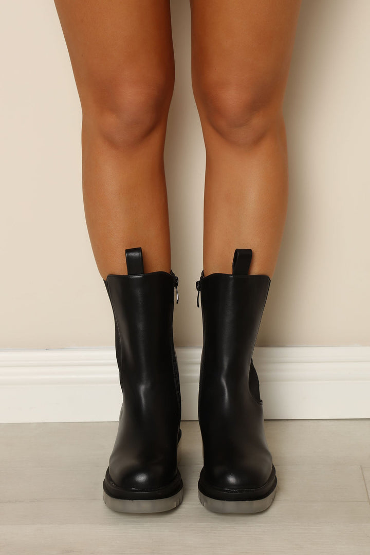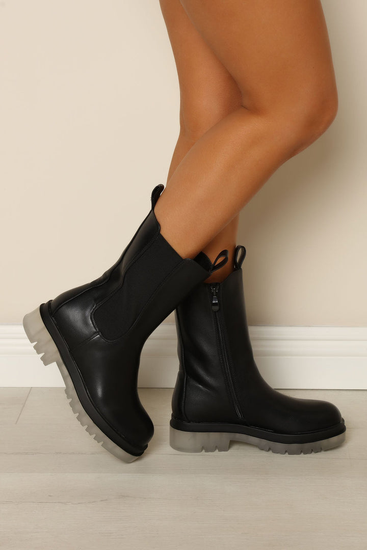 Available In Black, Nude And Tan. | Round Toe | Clear Lug Sole Bottom | Side Gore Detail | 1" Low Heel | Imported