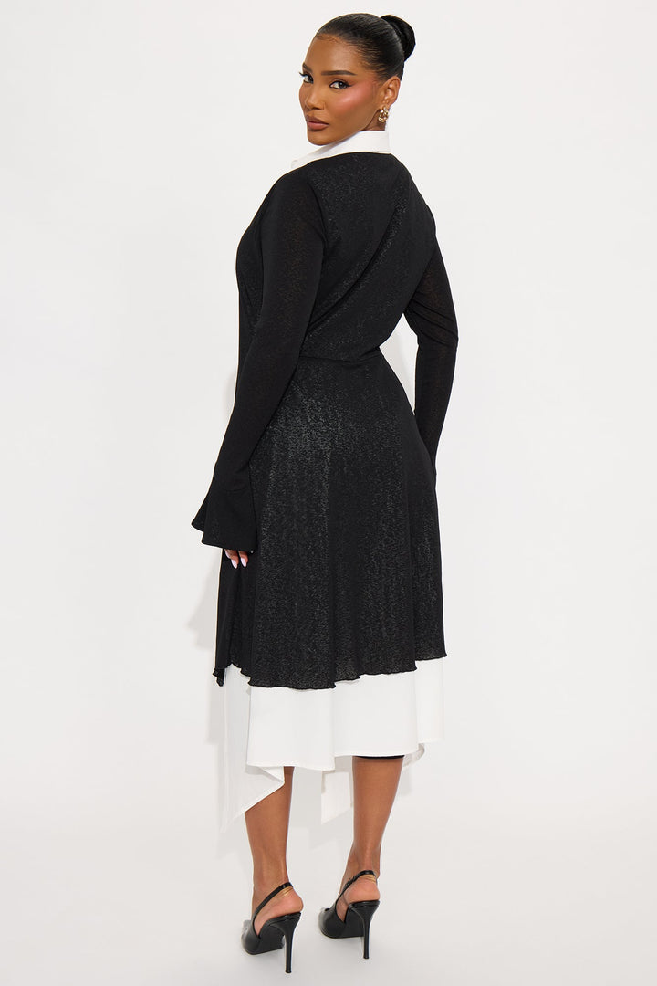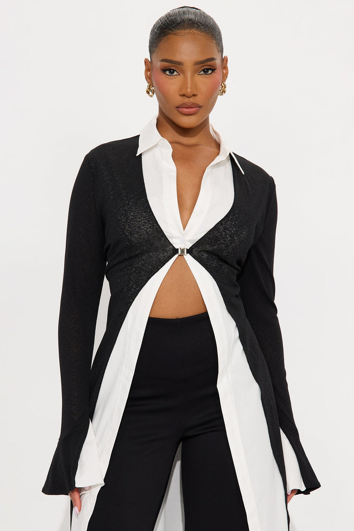 Do Not Disturb Set-in Poplin Cardigan - Black/White