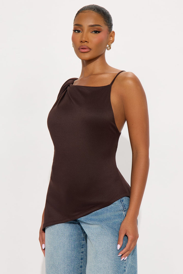 Dominica Asymmetrical Draped High Neck Top - Dark Brown