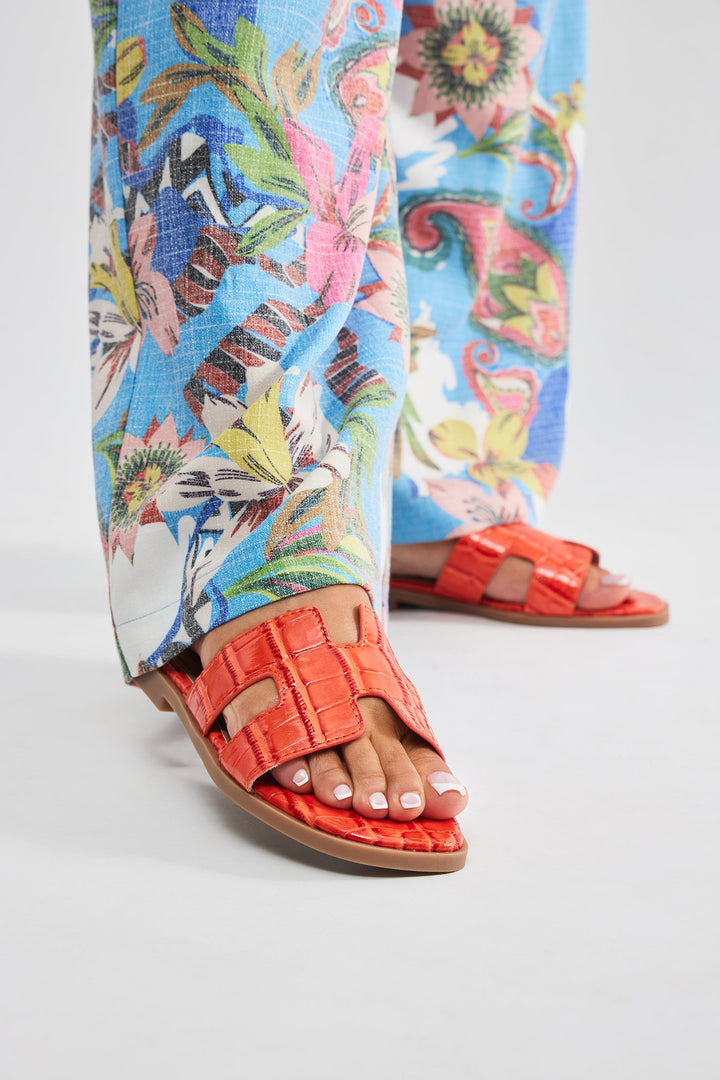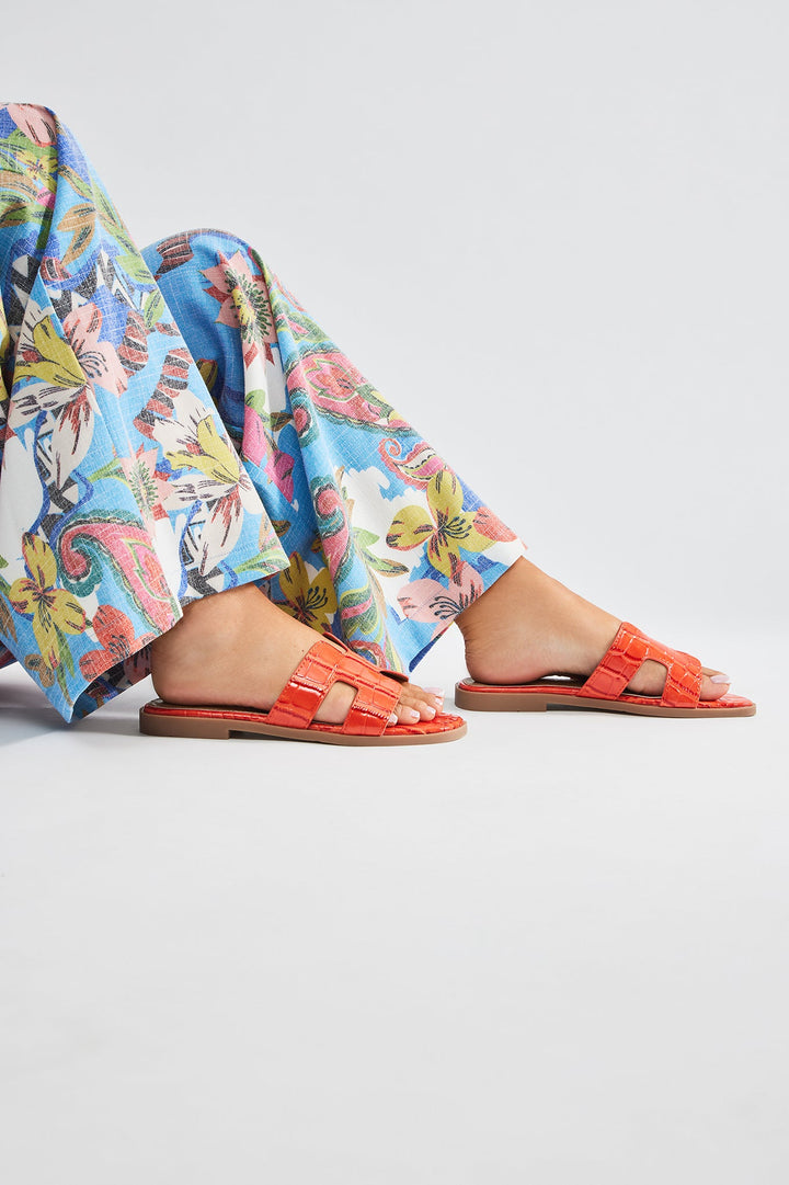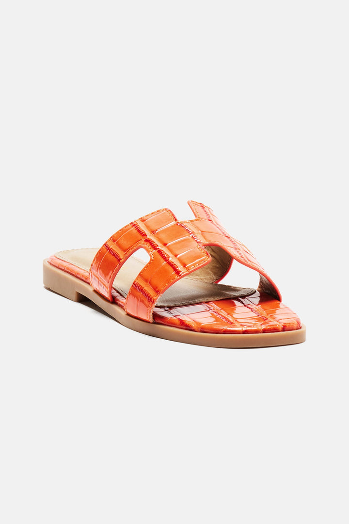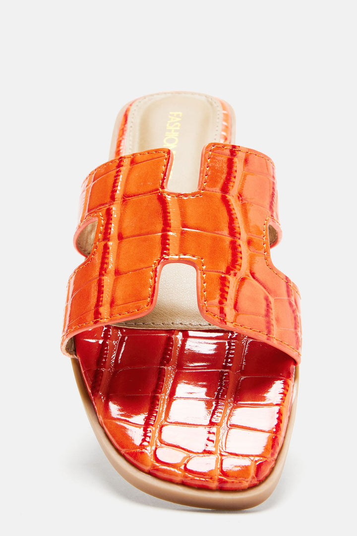 Available In Black, Brown, Brown/combo, Leopard, Orange And White. | Slip On Slides | Croc Print | Square Toe | Imported | Imported