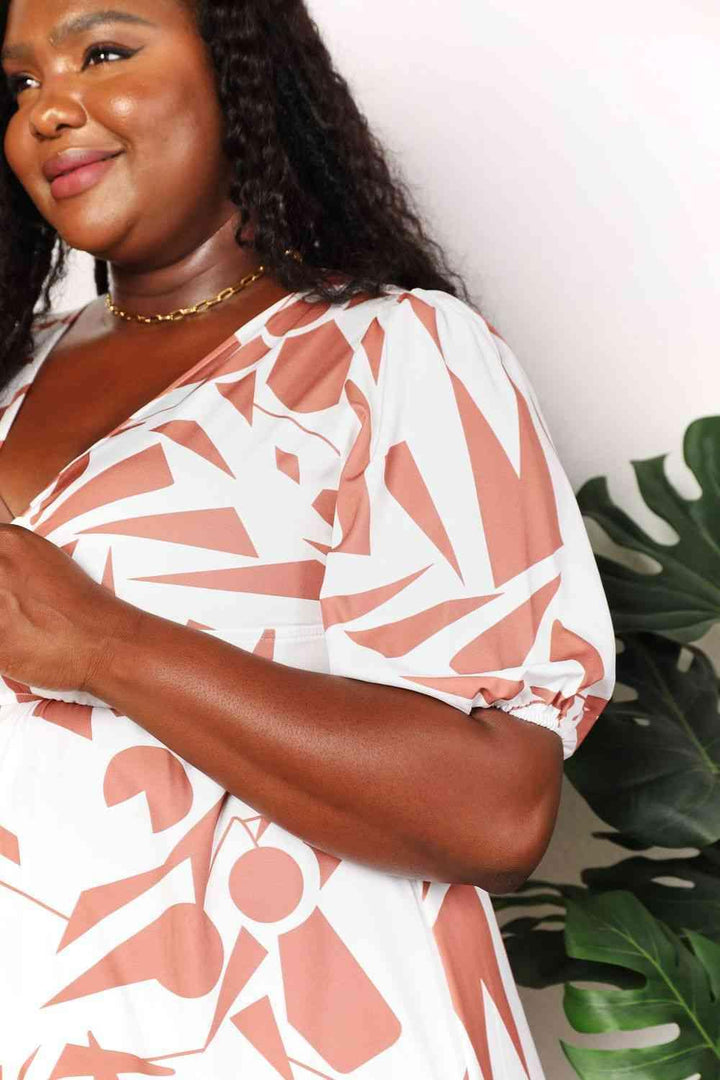 This printed dress features a surplice neckline for an elegant and flattering look. The balloon sleeves add a touch of whimsy and playfulness to the dress. With its midi length, it offers a chic and versatile style. This printed surplice balloon sleeve dress is perfect for both daytime and evening occasions, allowing you to look effortlessly stylish and sophisticated. Features: Basic style Sheer: Opaque Stretch: No stretch Body: Not lined Material composition: 95% polyester, 5% spandex Care instructions: Machine wash cold. Tumble dry low. Imported Model information: Regular size model-height 5'6", bust 34", waist 25", hip 35", size S, jeans size 1 Regular size model-height 5'7", bust 34", waist 26", hip 34", size S, jeans size 3 Curve model-height 5'9", bust 46", waist 37", hip 48", size 1X, jeans size 14W Product measurements: S: length 48 in, bust 36 in, waist 25 in, sleeve length 14 in, shoulder 14 in M: length 48 in, bust 37 in, waist 27 in, sleeve length 14 in, shoulder 14 in L: length 49 in, bust 40 in, waist 29 in, sleeve length 14 in, shoulder 15 in XL: length 50 in, bust 42 in, waist 32 in, sleeve length 14 in, shoulder 16 in