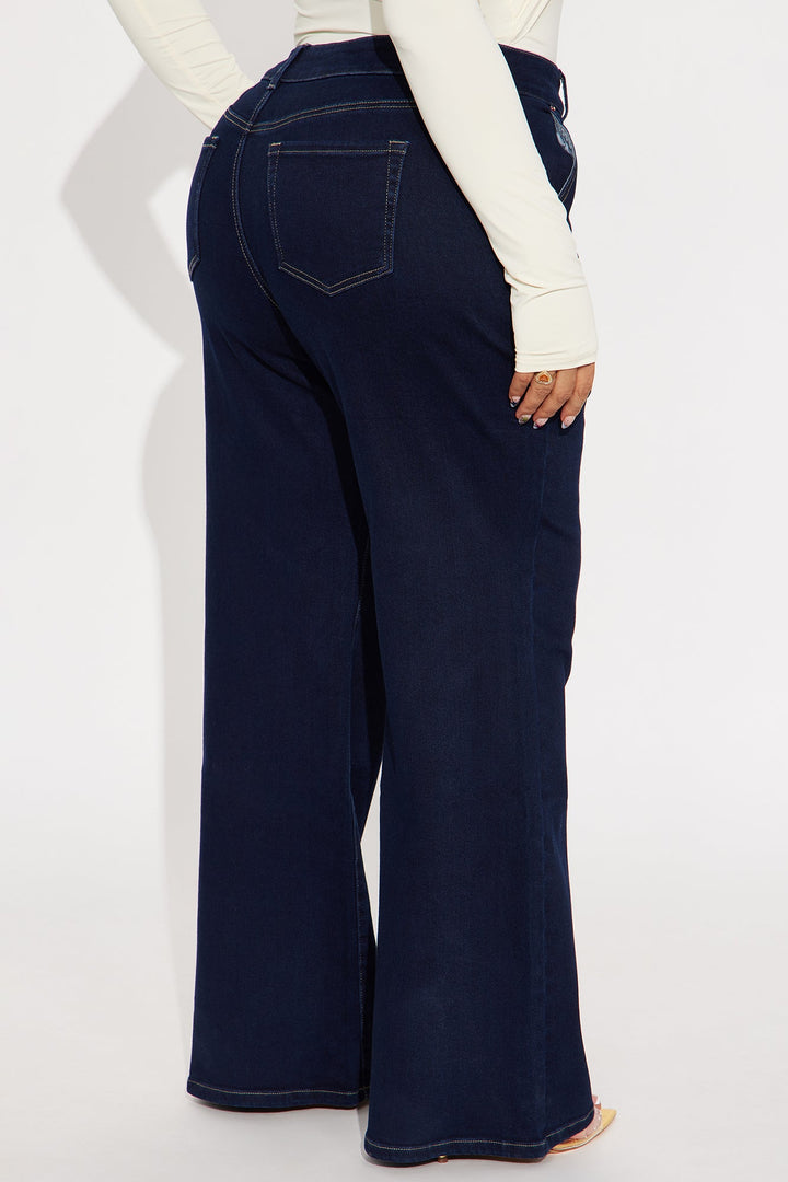 Double Up Stretch Trouser Wide Leg Jeans - Dark Denim