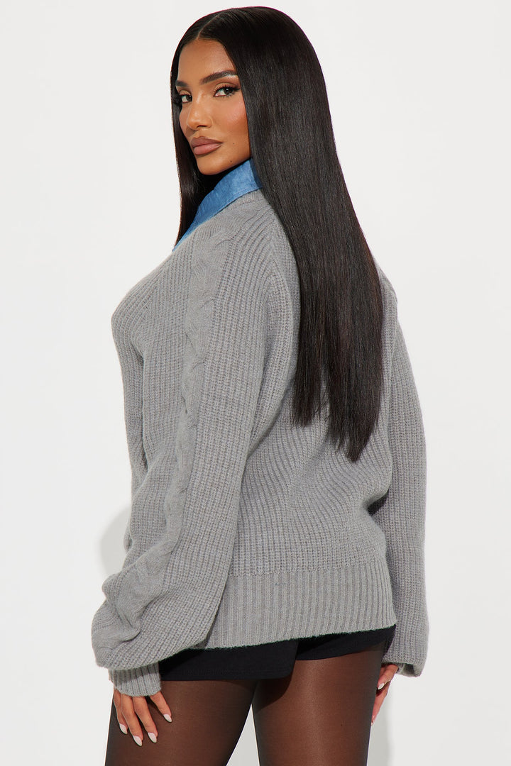 Downtown Girl Set In Denim Sweater - Grey/combo