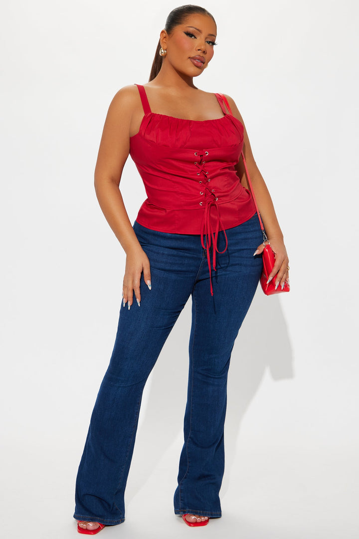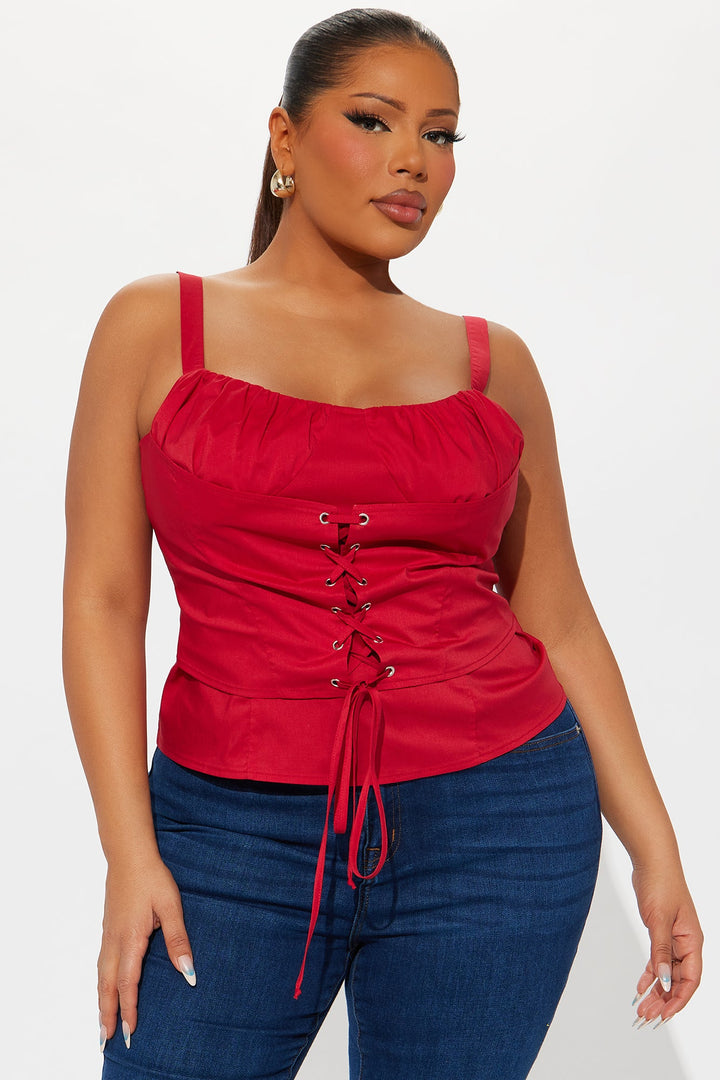 Dream Of Me Lace Up Poplin Top I - Red