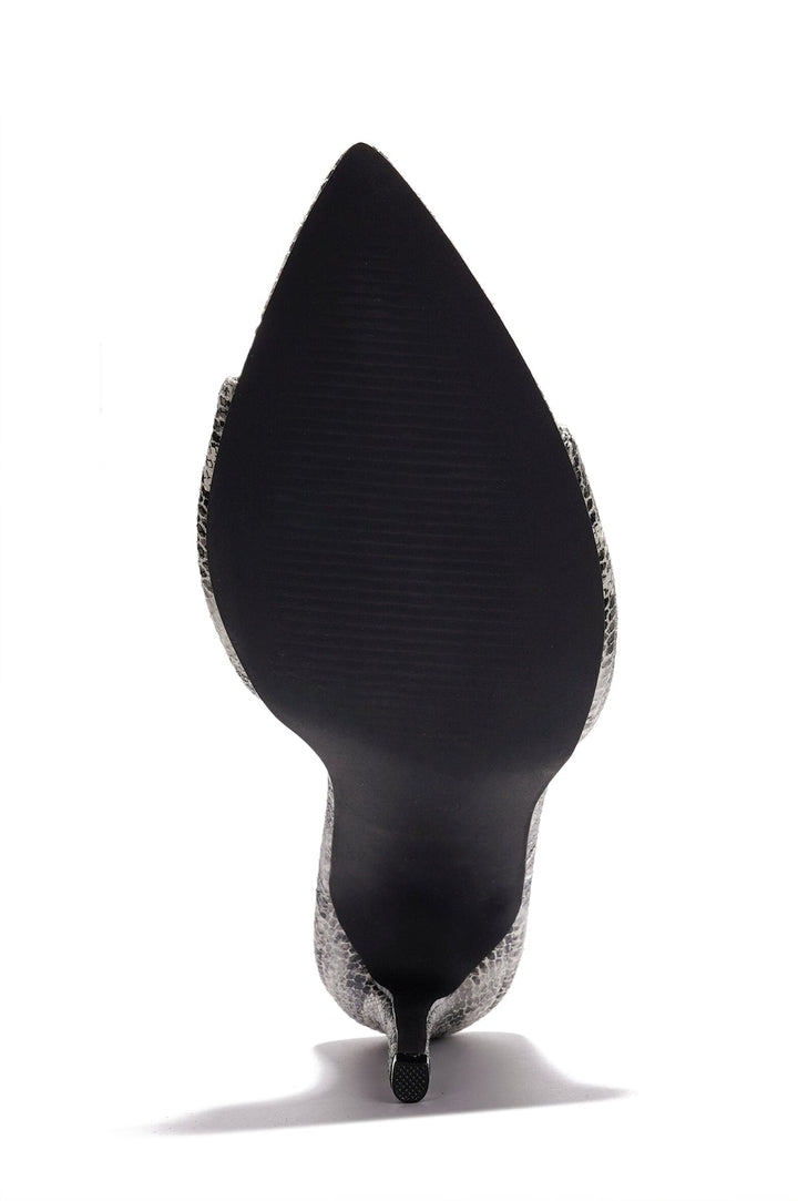 DULCEA - SNAKE - HEELS by CAPE ROBBIN Stiletto heel: 4-inch Slip-on PU Leather insole with memory foam cushioning for added comfort Animal print fabric Point toe Unleash your wild side with Dulcea Animal Print Stiletto Heels. Designed for the daring fashionista, these chic sandals feature a variety of eye-catching animal prints that add a touch of wild elegance to any outfit. Whether paired with your favorite dresses or jeans, these heels will ensure you stand out with every step.