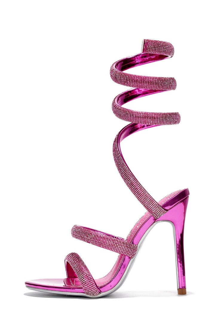 DYANA - FUCHSIA - HEELS by CAPE ROBBIN Stiletto Heel: 4 inch Wraparound strappy heel PU leather insole with memory foam cushioning for added comfort Sparkling rhinestone-encrusted straps Round toe \