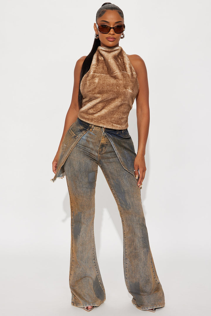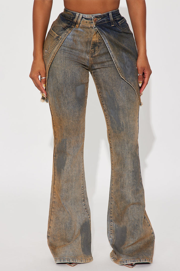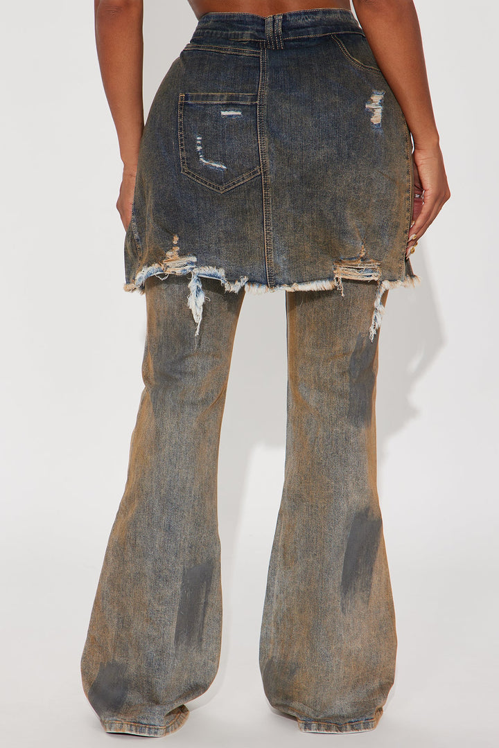 Available In Vintage Wash. | Bootcut Jean | Functional Pockets | Skirt Overlay | Ripped | Tinted | 11" Rise | 36" Inseam | Disclaimer: Due To The Specialized Wash Process, Each Garment Is Unique. | Disclaimer: Due To The Distressing Process, Each Garment Is Unique | 98% Cotton 2% Spandex | Medium Stretch | Imported