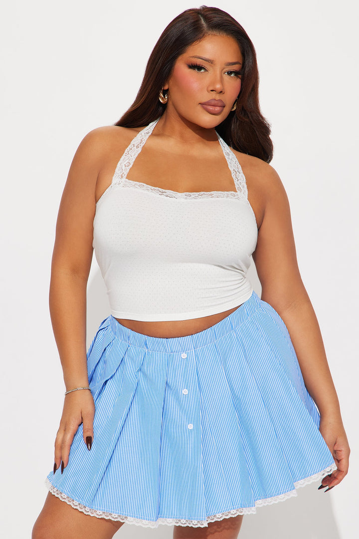 Available In White And Yellow. | Halter Top | Stretch | Lace Trim | Cropped | Shell:62%Polyester 30%Rayon 8%Spandex | Lace:92%Nylon 8%Spandex | Imported