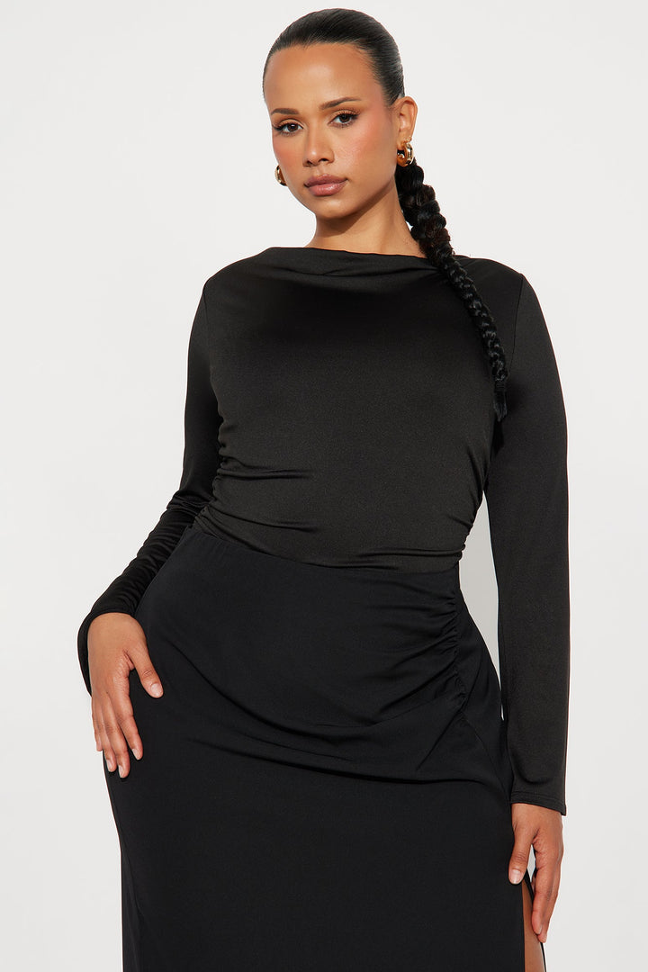 Edna Cowled Back Boat Neck Bodysuit - Black
