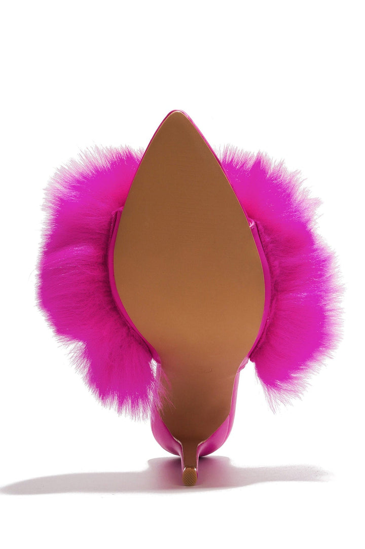 EDYTH - PINK - HEELS by CAPE ROBBIN Stiletto heel: 4.5-inch Slip on PU leather insole with memory foam cushioning Faux fur upper Pointy toe Elevate your style with the luxurious Edyth Heel Sandals, adorned with soft, plush fur for an added touch of opulence and uniqueness. The sleek high heel not only elongates your legs but also infuses sophistication into any ensemble. Perfect for both casual and formal occasions, these versatile sandals effortlessly complement dresses, skirts, and tailored pants. Step into elegance and make a statement wherever you go with the Edyth Faux Fur Heeled Sandals.