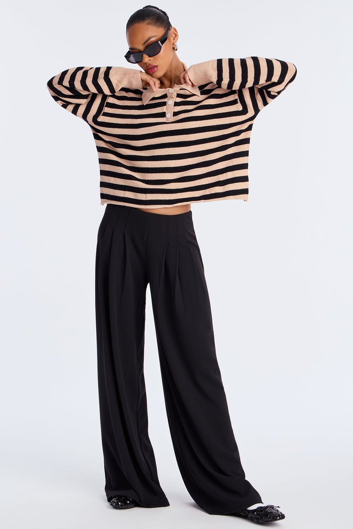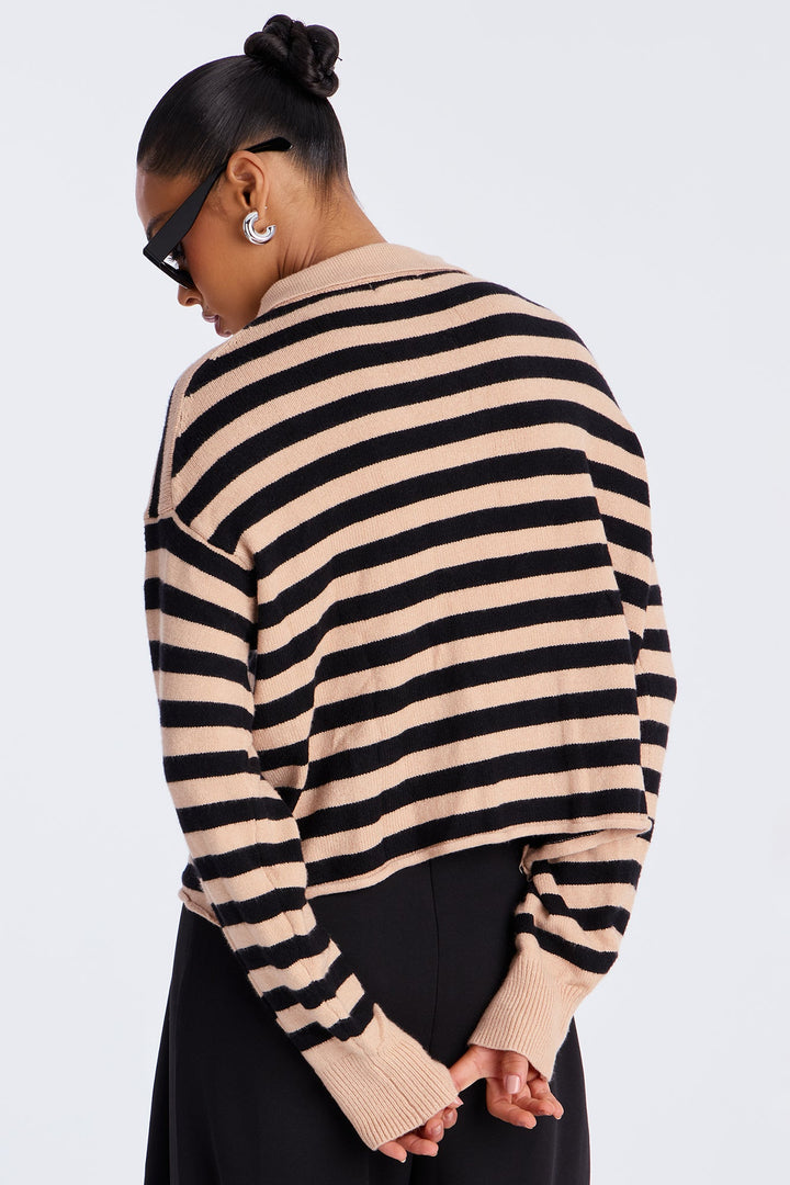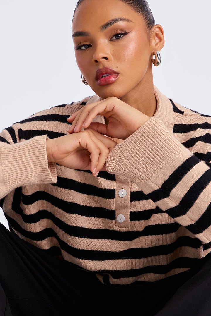 Available In Ivory/combo And Taupe/combo. | Pullover Sweater | Quarter Button Up | Self : 50% Rayon 30% Polyester 20% Nylon | Imported