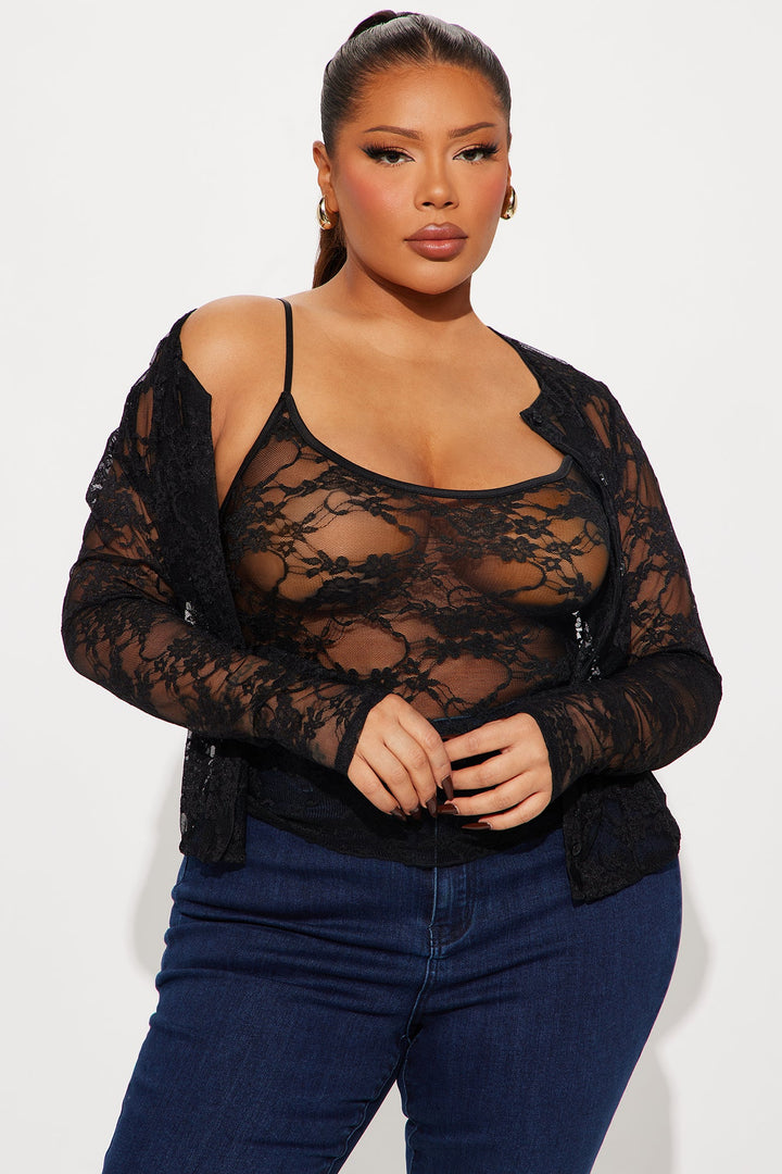 Elara Cami And Cardigan 2 Piece Lace Set - Black