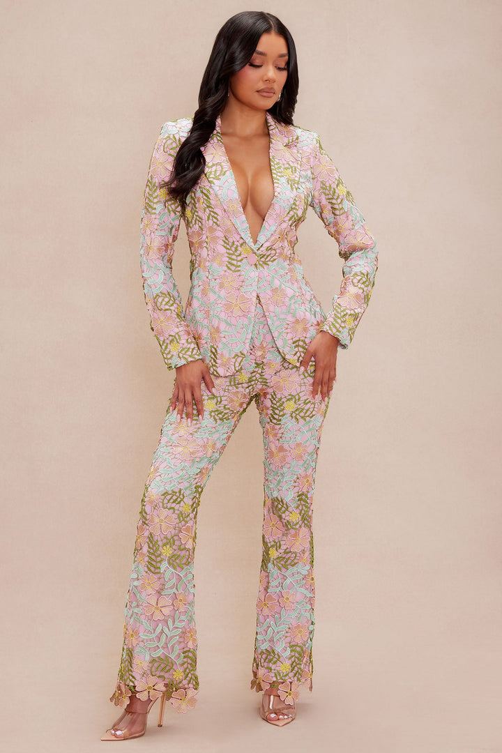 Available In Green/combo. | Jacket | Long Sleeve | Hook And Eye Closure | Embroidered | Sheer | Non Stretch | Disclaimer: Due To The Embroidery Placement , Each Garment Is Unique. | Main: 100% Polyester | Lining: 100% Polyester | Imported