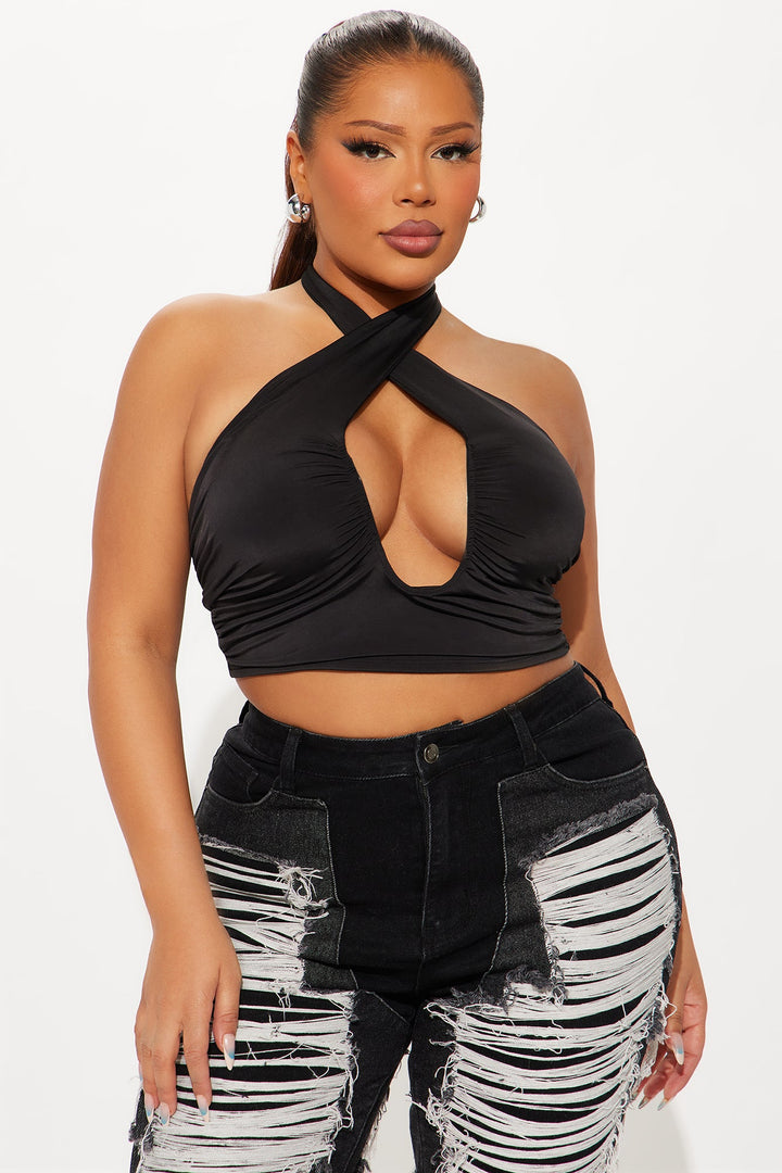 Eliana Ruched Halter Top - Black