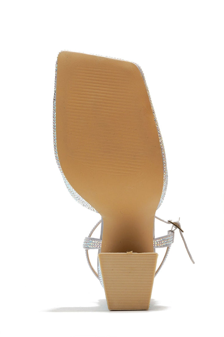 EMELIA - SILVER - HEELS by CAPE ROBBIN Block heel: 4-inch Ankel strap PU leather insole with memory foam cushioning Rhinestone embellished Square toe Step into sparkle with the Emelia heels. These heels offer all-day comfort and effortlessly pair with a variety of outfits, from evening gowns to cocktail dresses. The Emelia Rhinestone Embellished Block Heels are a versatile and glamorous addition to any wardrobe, perfect for weddings, galas, or stylish nights out.