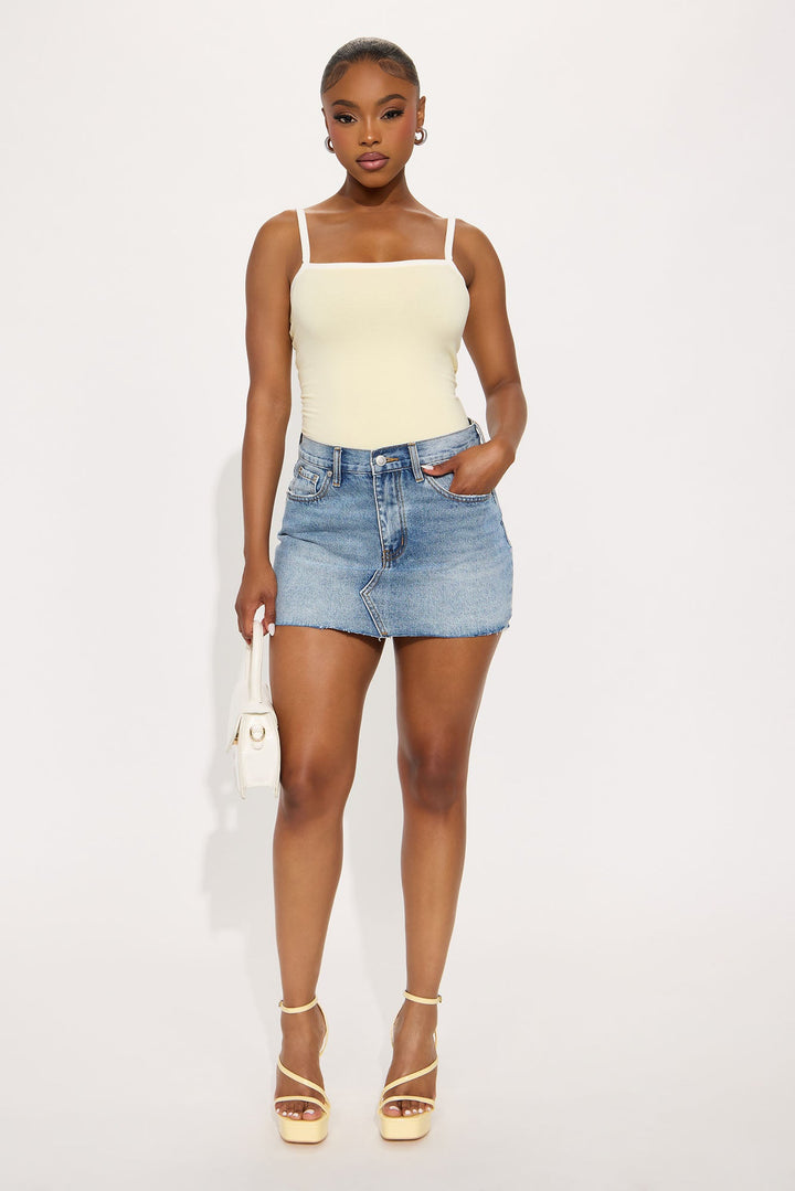 Available In Black/White, Sage/combo And Yellow/combo. | Cami | Square Neck | Spaghetti Straps | Stripe Print | Stretch | Body: 93% Cotton 7% Spandex | Imported