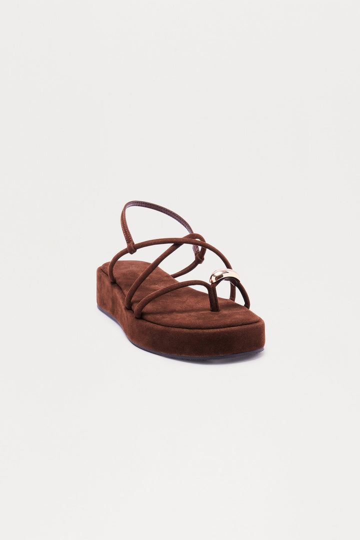 Available In Black, Burgundy And Chocolate. | Platform Sandals | Hardware Toe Ring Detail | Round Toe | 1" Platform | Imported