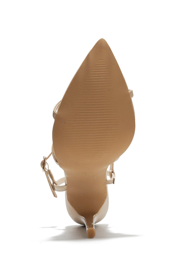 EMYLEE - BEIGE - HEELS by CAPE ROBBIN Heel: 4 inch Ankle strap with adjustable buckle PU leather insole with memory foam cushioning for added comfort Pointy toe Elevate your wardrobe with these sophisticated Emylee minimalist heels,designed for the modern fashionista. These heels feature a sleek,pointed-toe silhouette and delicate straps that crisscross elegantly,providing both style and support.\