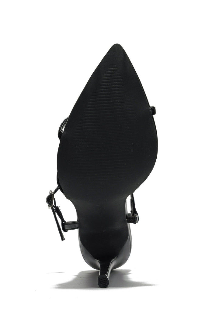 EMYLEE - BLACK - HEELS by CAPE ROBBIN Heel: 4 inch Ankle strap with adjustable buckle PU leather insole with memory foam cushioning for added comfort Pointy toe Elevate your wardrobe with these sophisticated Emylee minimalist heels,designed for the modern fashionista. These heels feature a sleek,pointed-toe silhouette and delicate straps that crisscross elegantly,providing both style and support.\