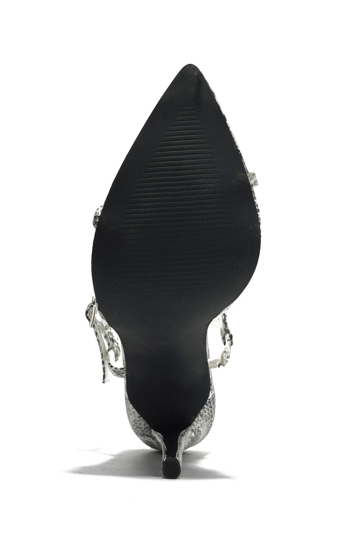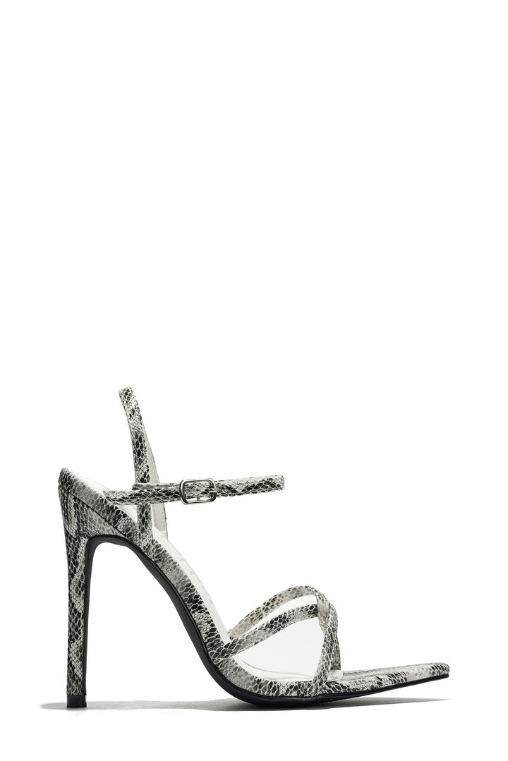 EMYLEE - SNAKE - HEELS by CAPE ROBBIN Heel: 4 inch Ankle strap with adjustable buckle PU leather insole with memory foam cushioning for added comfort Pointy toe Elevate your wardrobe with these sophisticated Emylee minimalist heels,designed for the modern fashionista. These heels feature a sleek,pointed-toe silhouette and delicate straps that crisscross elegantly,providing both style and support.\