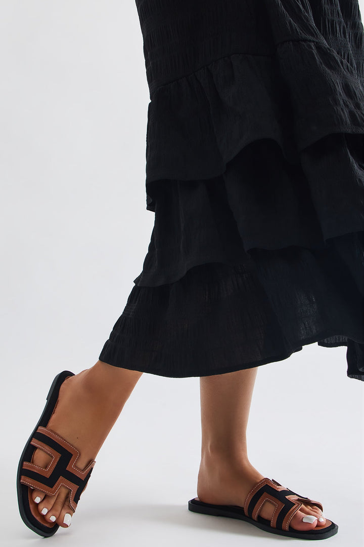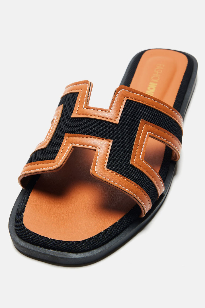 Available In Black And White. | Flat Sandals | Square Toe | Flat Heel | Imported