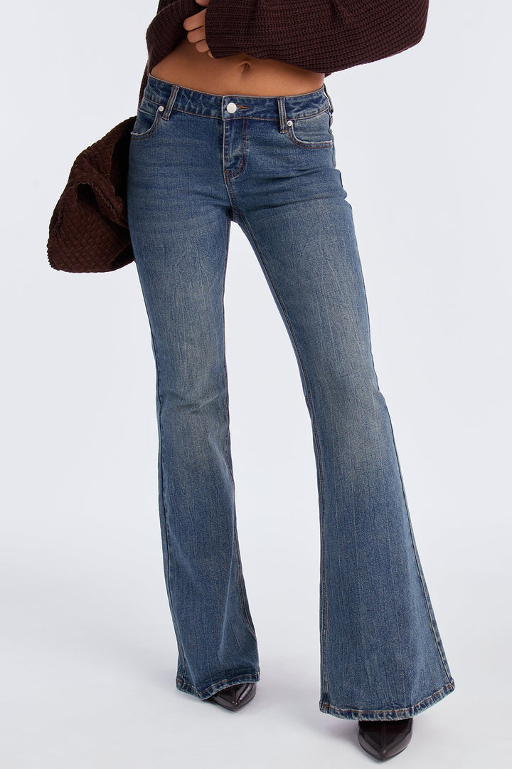 Endless Stretch Low Rise Flare Jeans - Vintage Wash