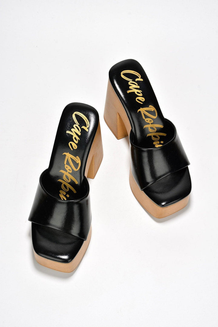 ENISLE - BLACK - HEELS by CAPE ROBBIN high block heels cork platform metallic These Enisle high block heels are the perfect way to add a little extra sparkle to your look. With a cork platform and metallic finish,they offer a comfortable height and plenty of style.