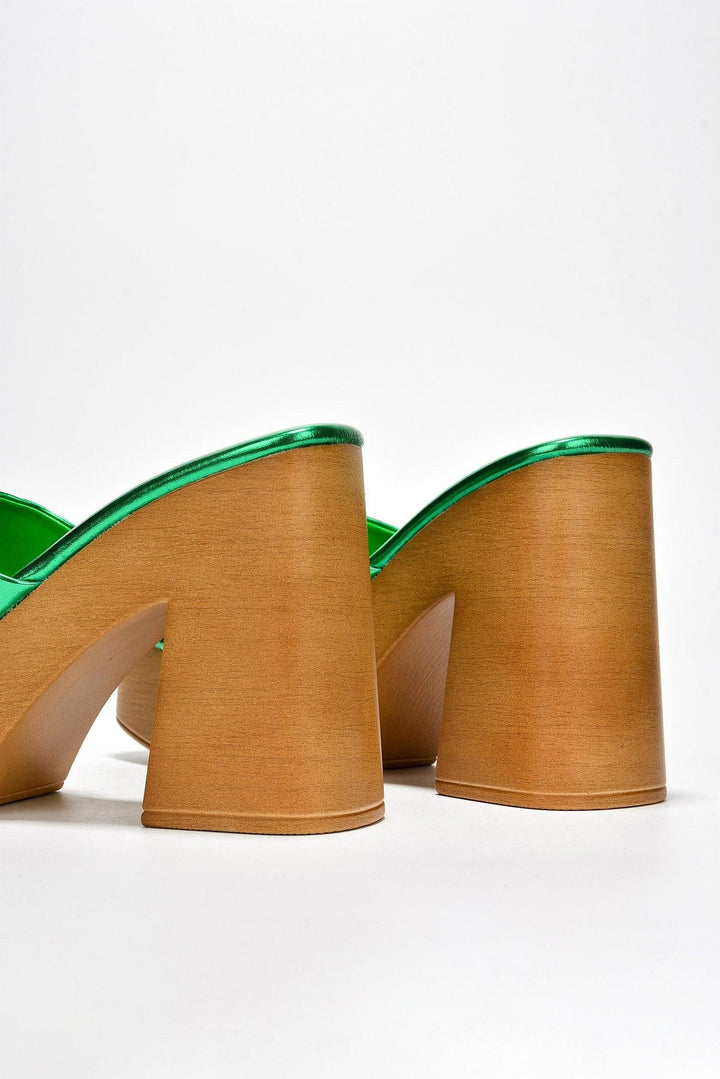 ENISLE - GREEN - HEELS by CAPE ROBBIN high block heels cork platform metallic These Enisle high block heels are the perfect way to add a little extra sparkle to your look. With a cork platform and metallic finish,they offer a comfortable height and plenty of style.