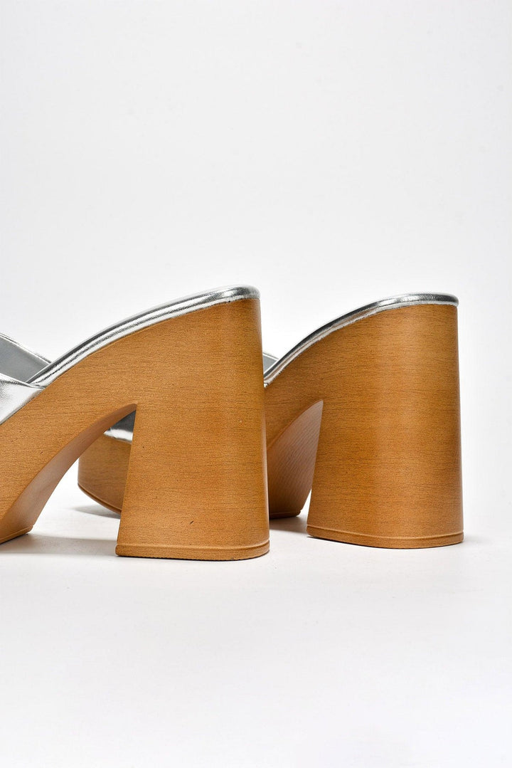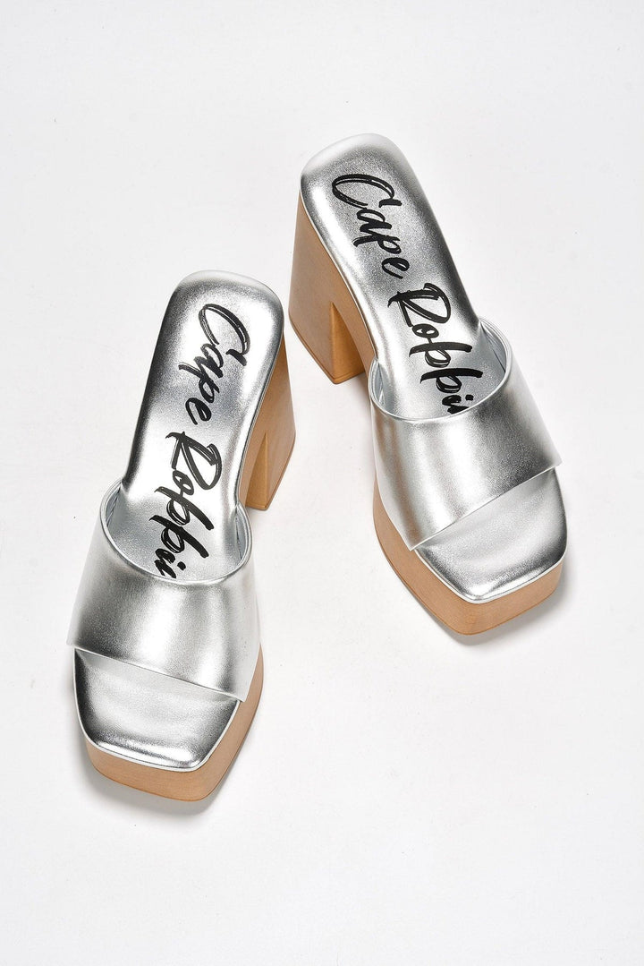 ENISLE - SILVER - HEELS by CAPE ROBBIN high block heels cork platform metallic These Enisle high block heels are the perfect way to add a little extra sparkle to your look. With a cork platform and metallic finish,they offer a comfortable height and plenty of style.